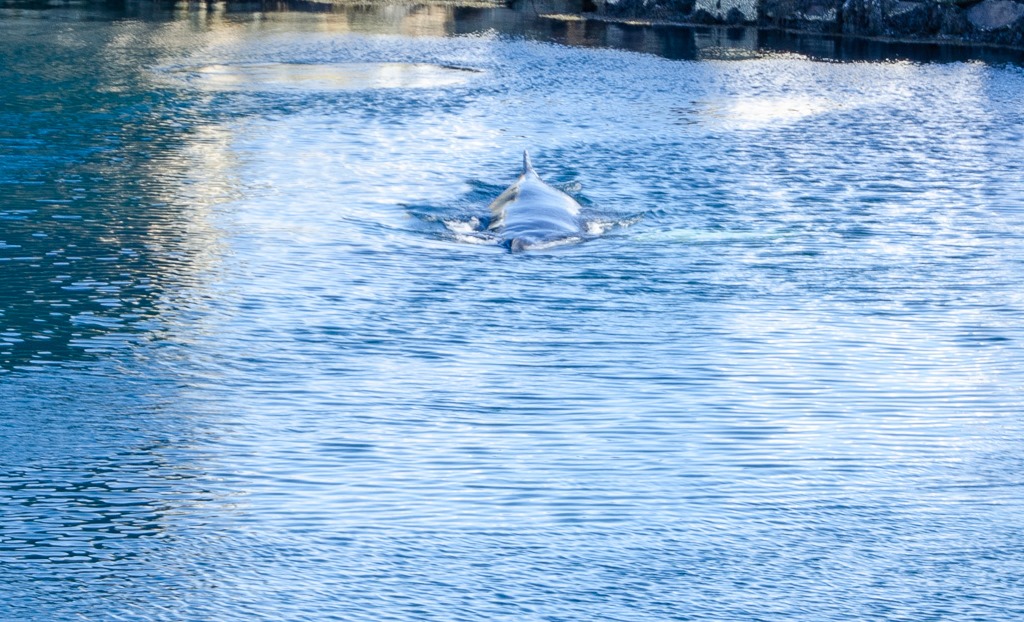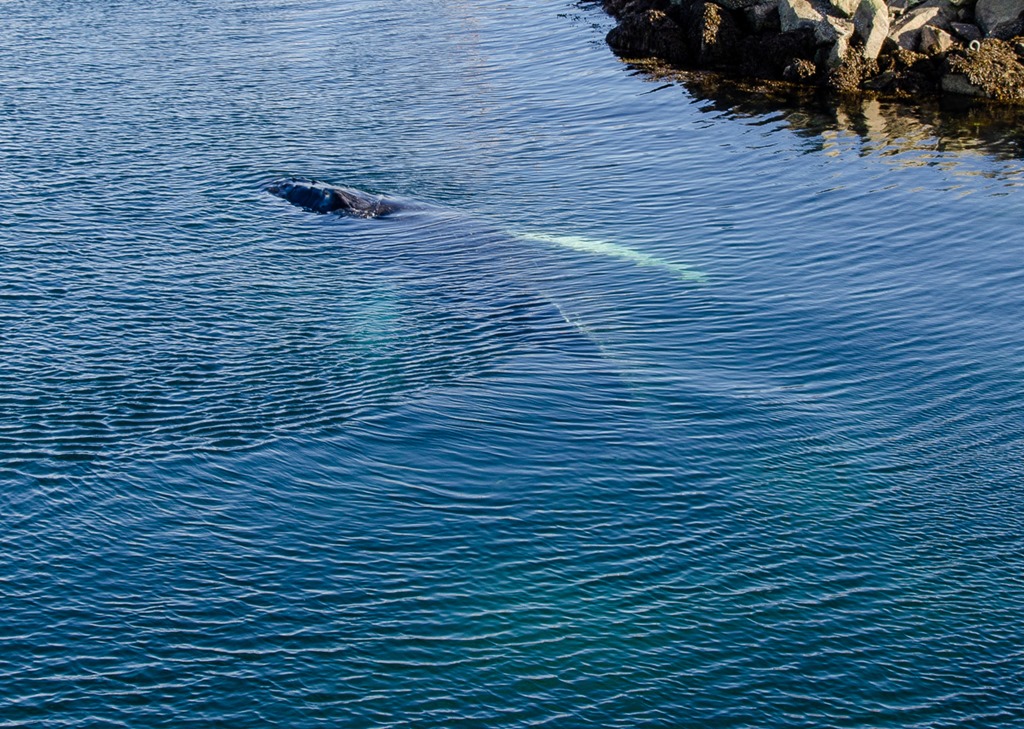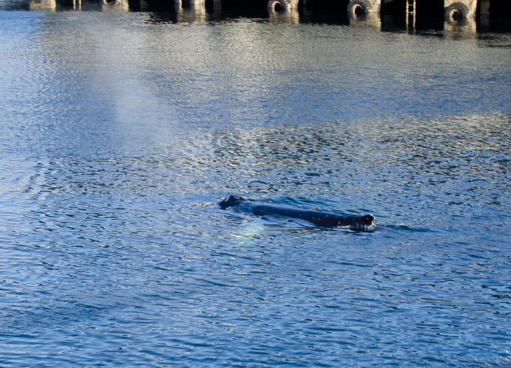 Under förmidagen så får jag syn på knölvalen igen. Den var ju inne i hamnen igår förmidags men då fick jag inte tagit några bilder.