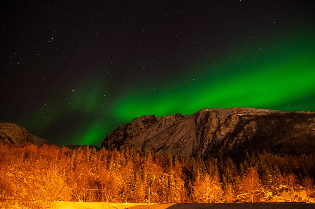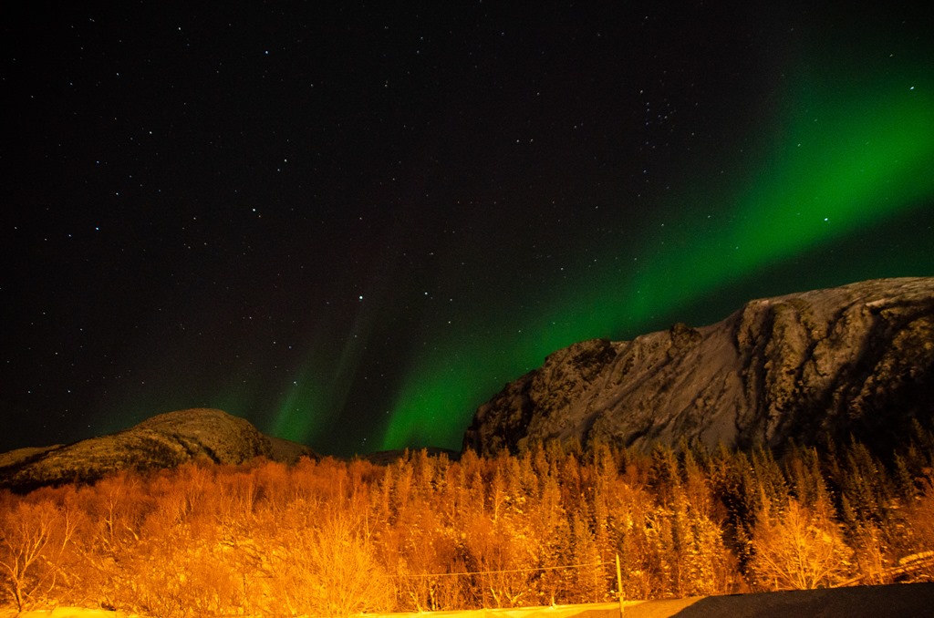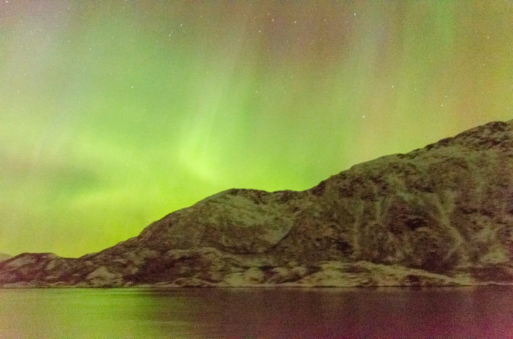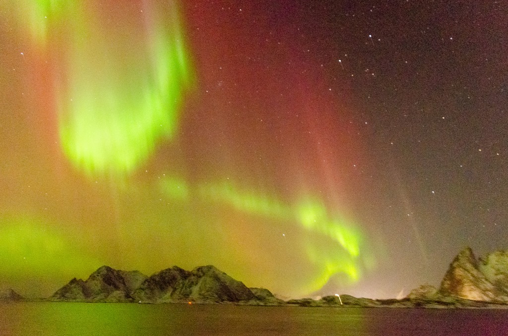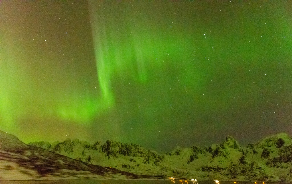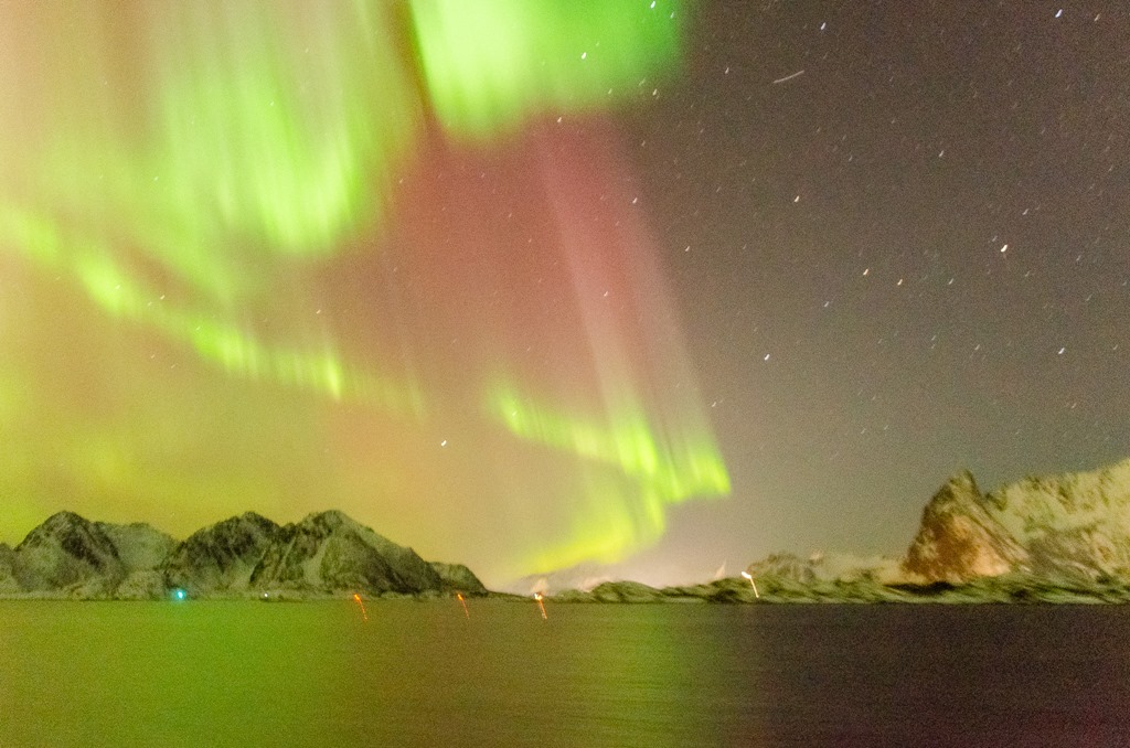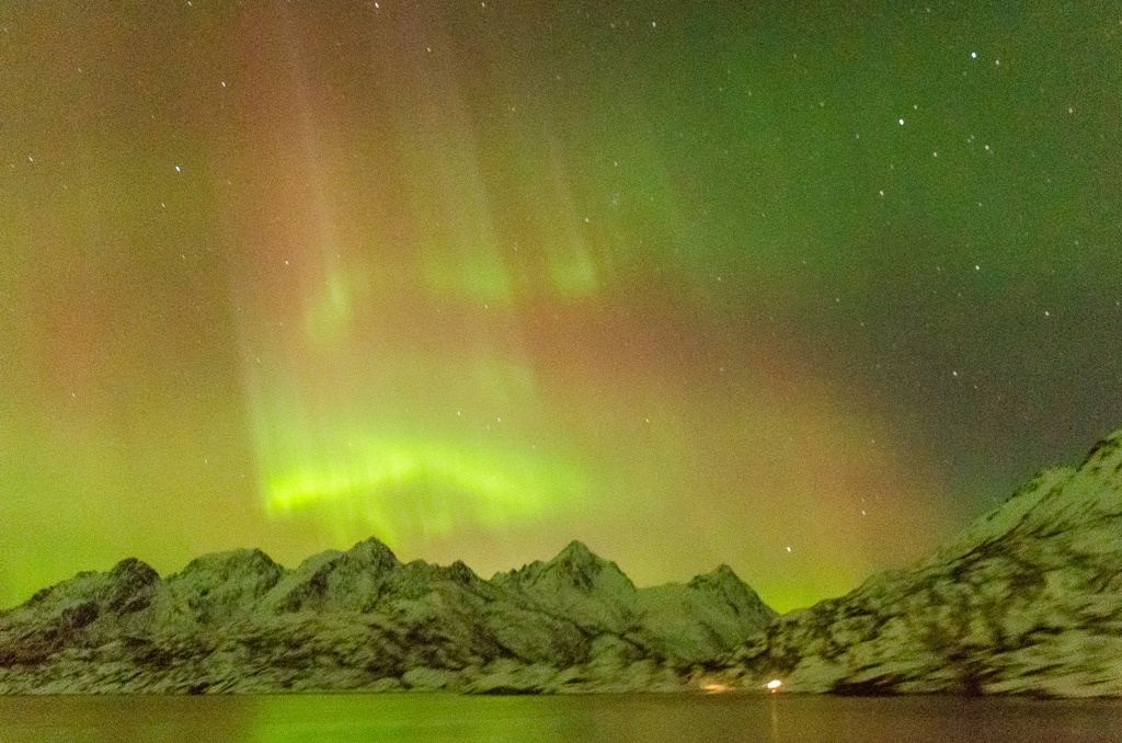 Kommer upp i Raftsundet och det är fortsatt mycket norrsken.
