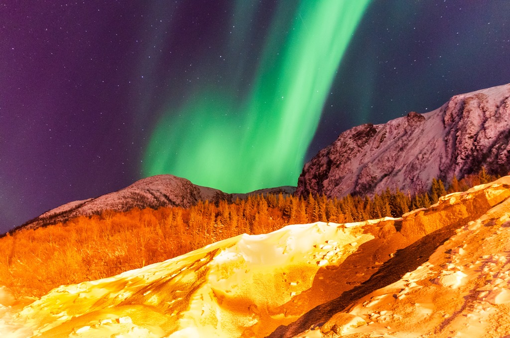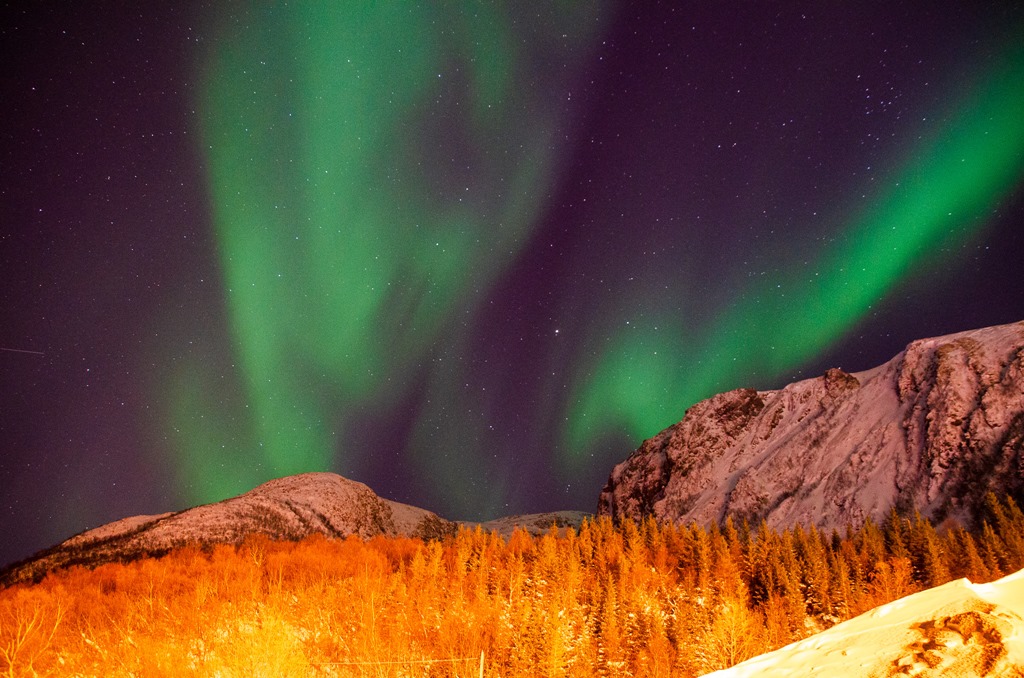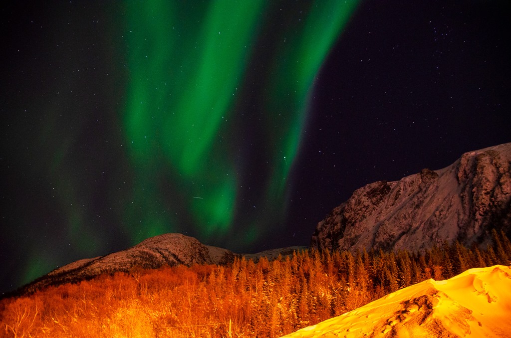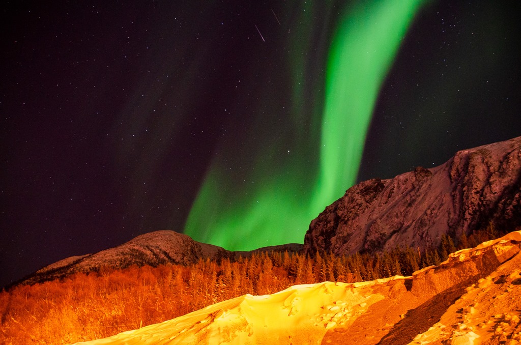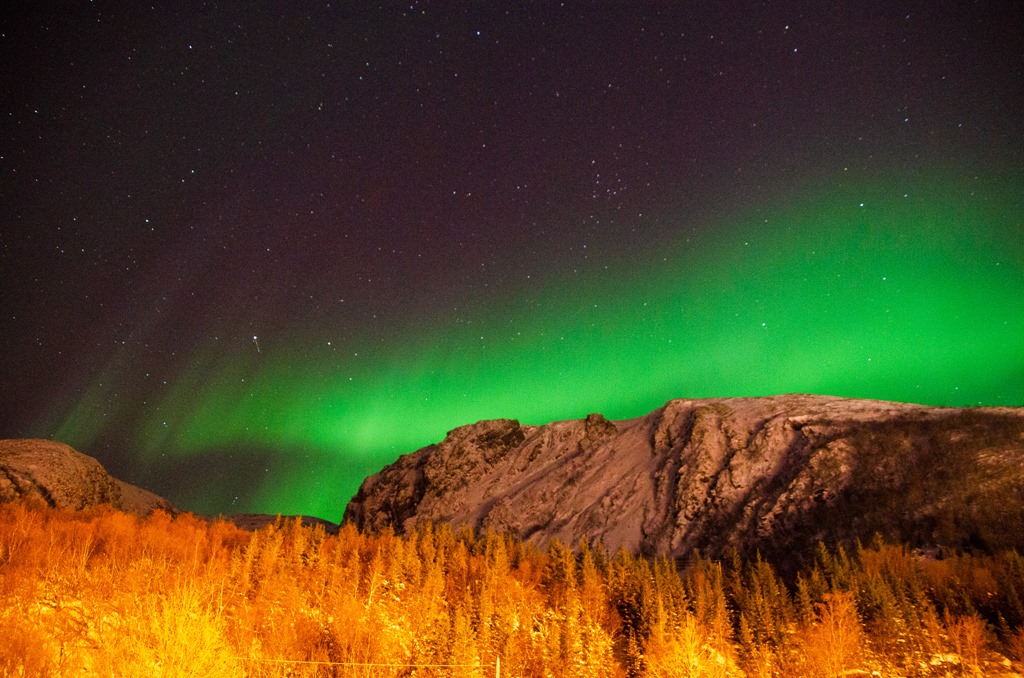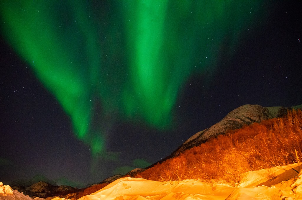 Kommer upp i Raftsundet och det är fortsatt mycket norrsken.