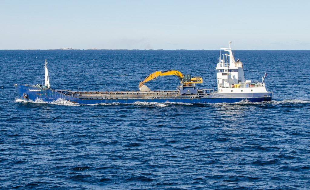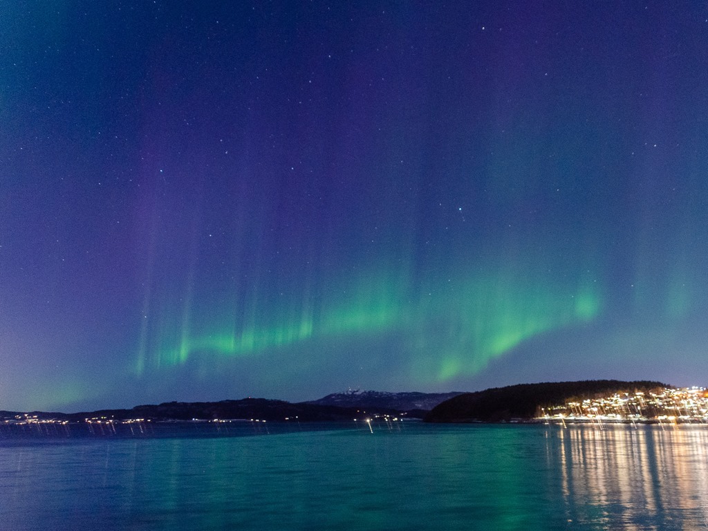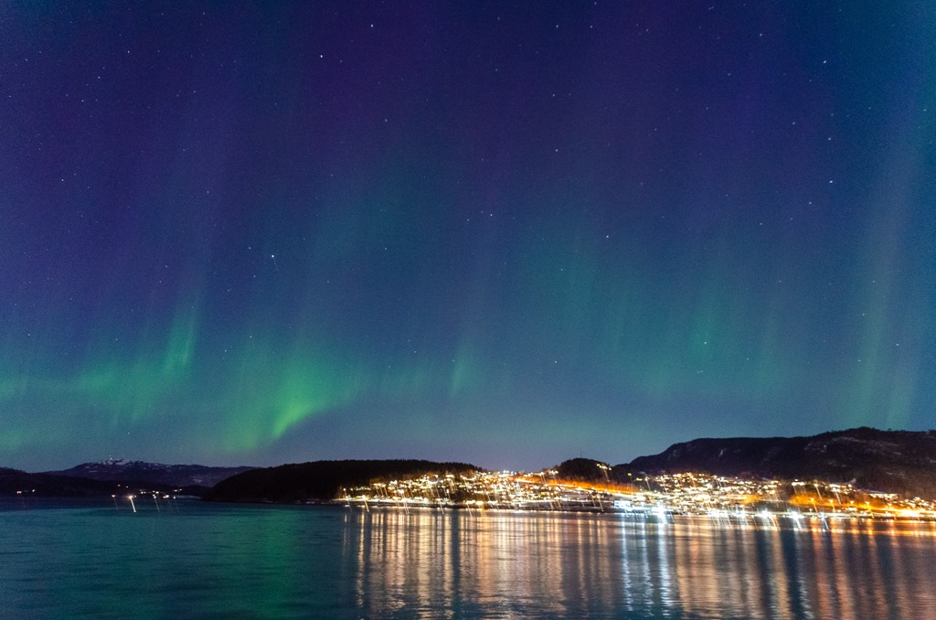 När lossningen är avslutad för dagen så blir det lite svagt norrsken.