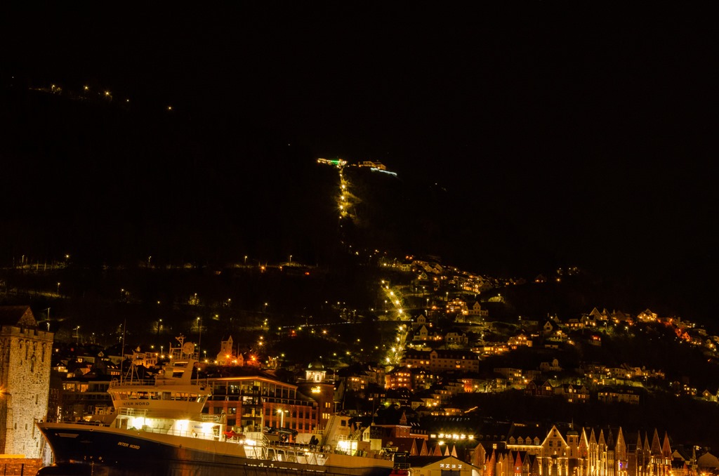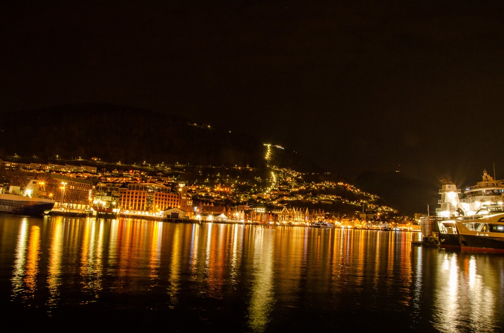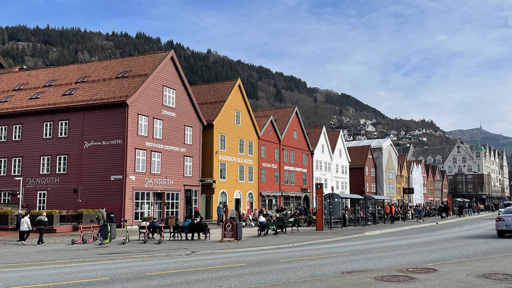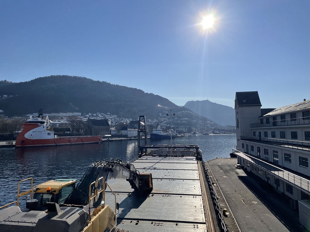 10:25 Förtöjda i Bergen i strålande solsken och +9 grader.