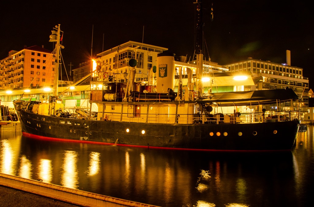 När jag gått av vakten så går jag en tur in till byn. Ser MS Stockholm som ligger stopp över påsk. De har gjort en tur uppe i Lofoten. Får se om Magnus är ombord.