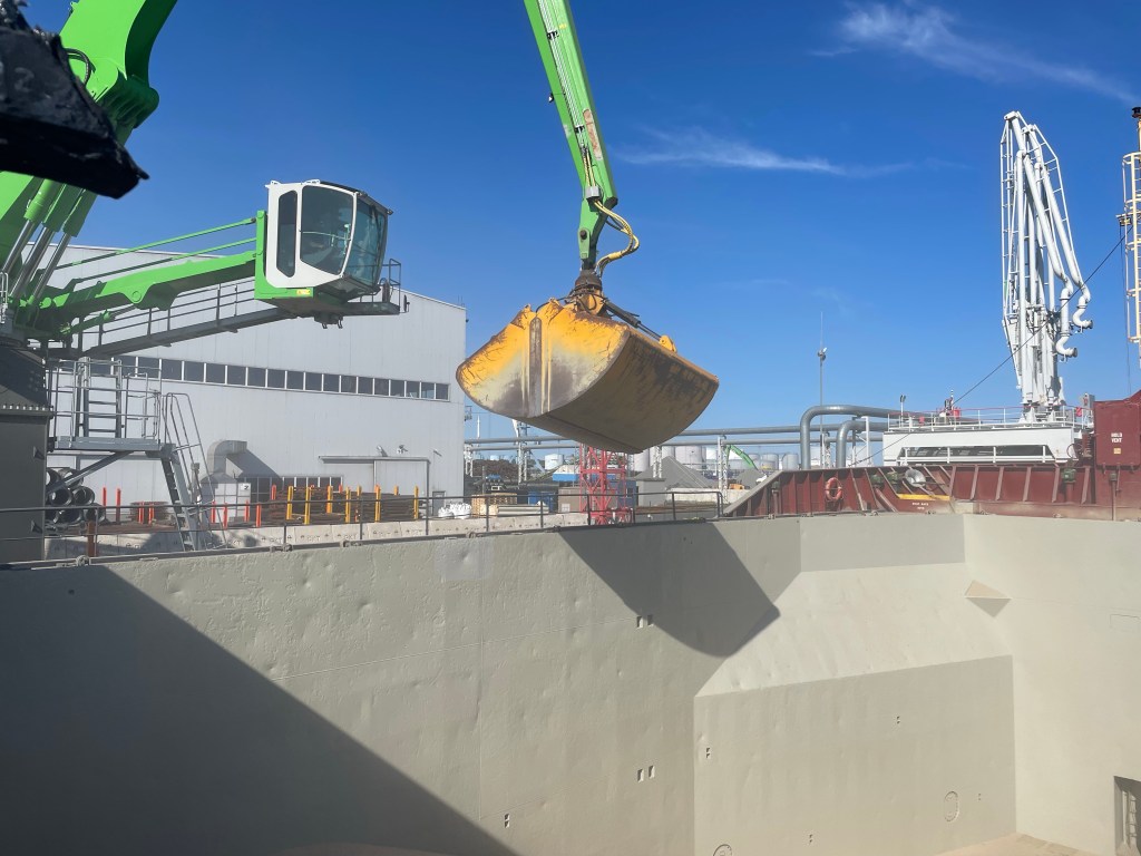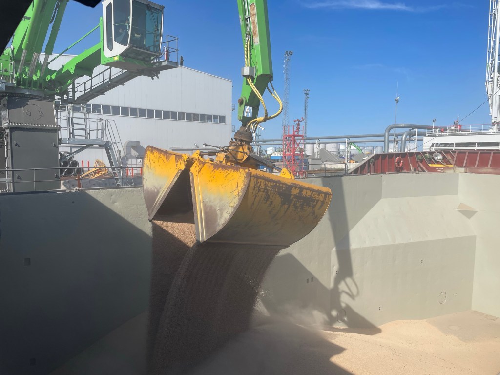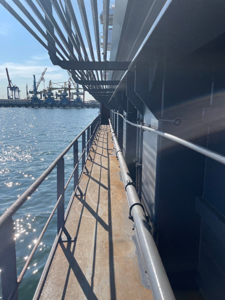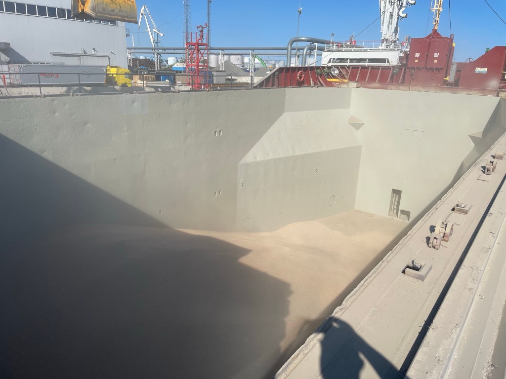 01:00 Förtöjda i Muuga och vi får ombord inspektör som skall se om lastrummet är rent nog för att lasta ärtor. Vi får lite påbackning och han skall komma ombord strax innan lastning för att se att vi sopat upp det sista.