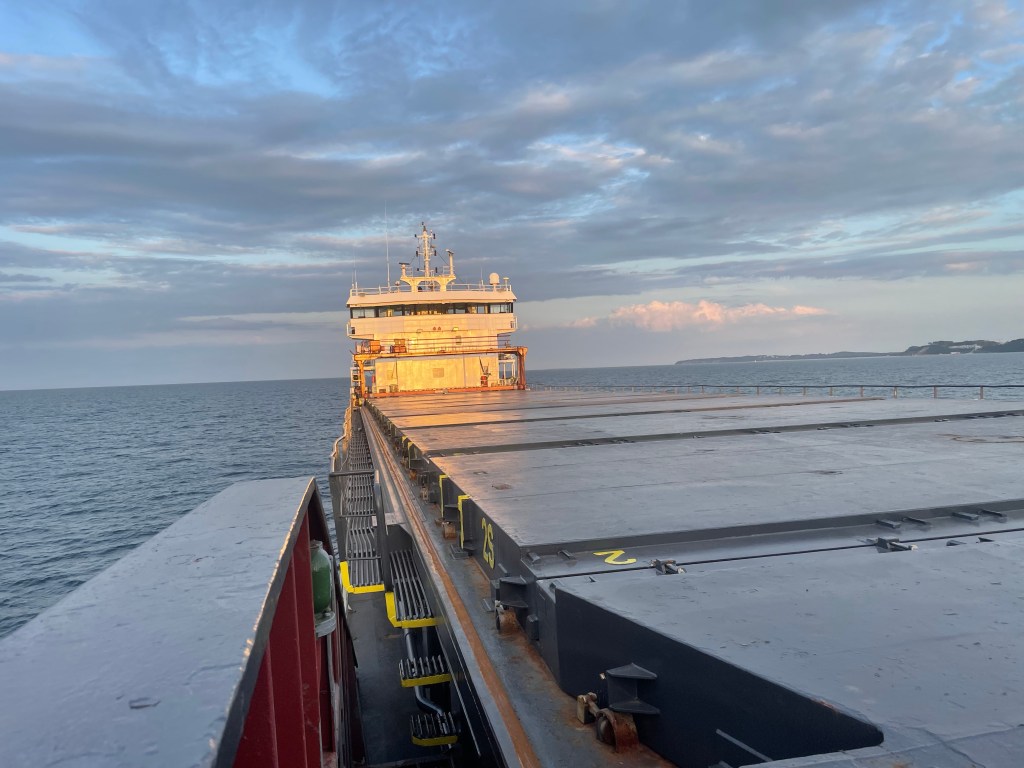 Vi ligger fortfarande till ankars och väntar på kajplats.