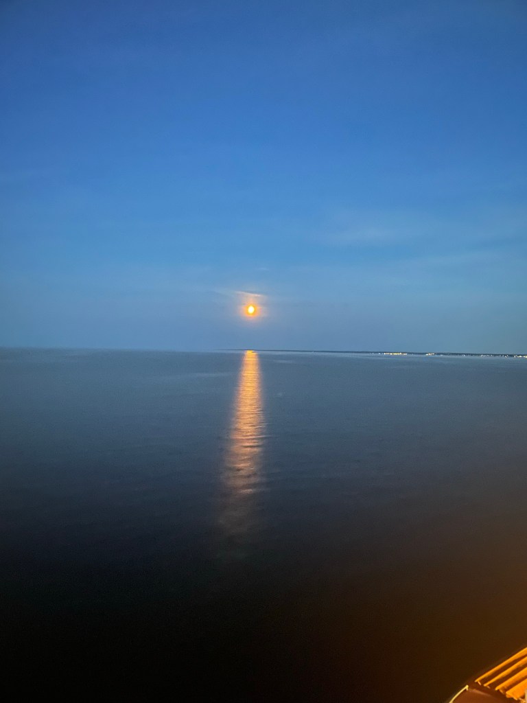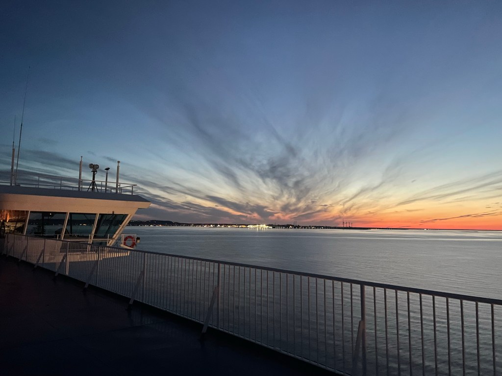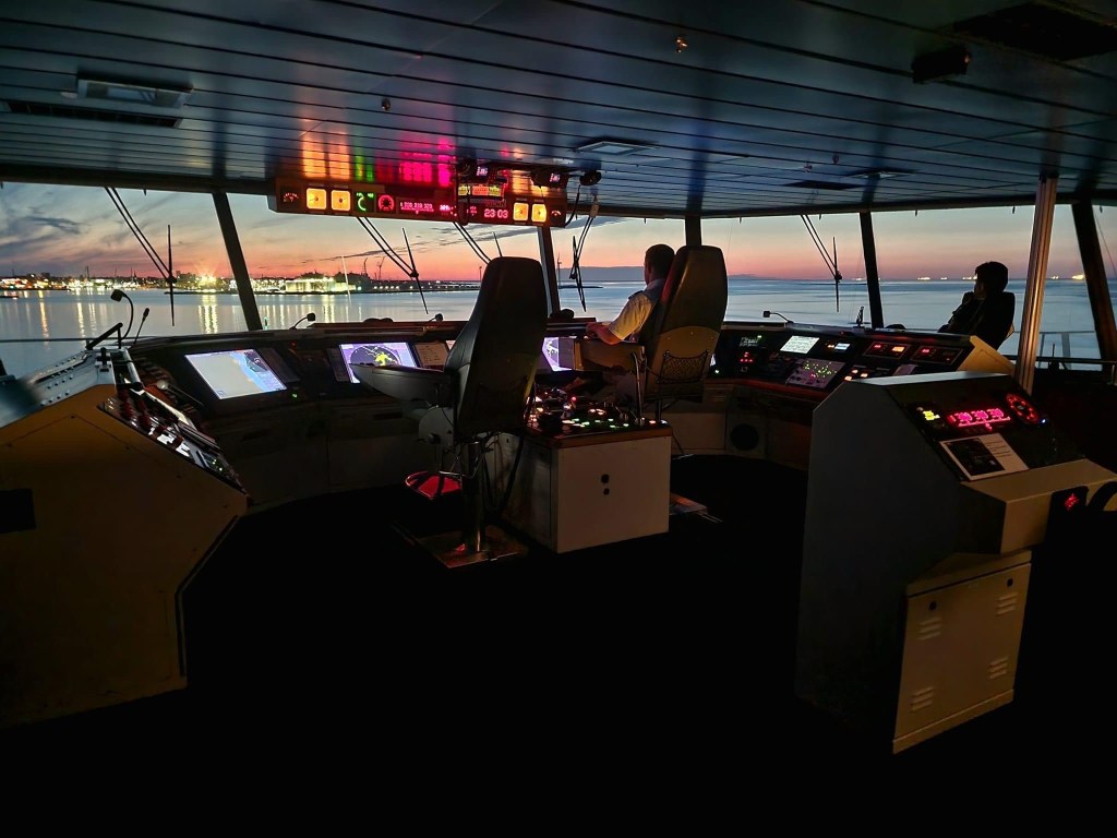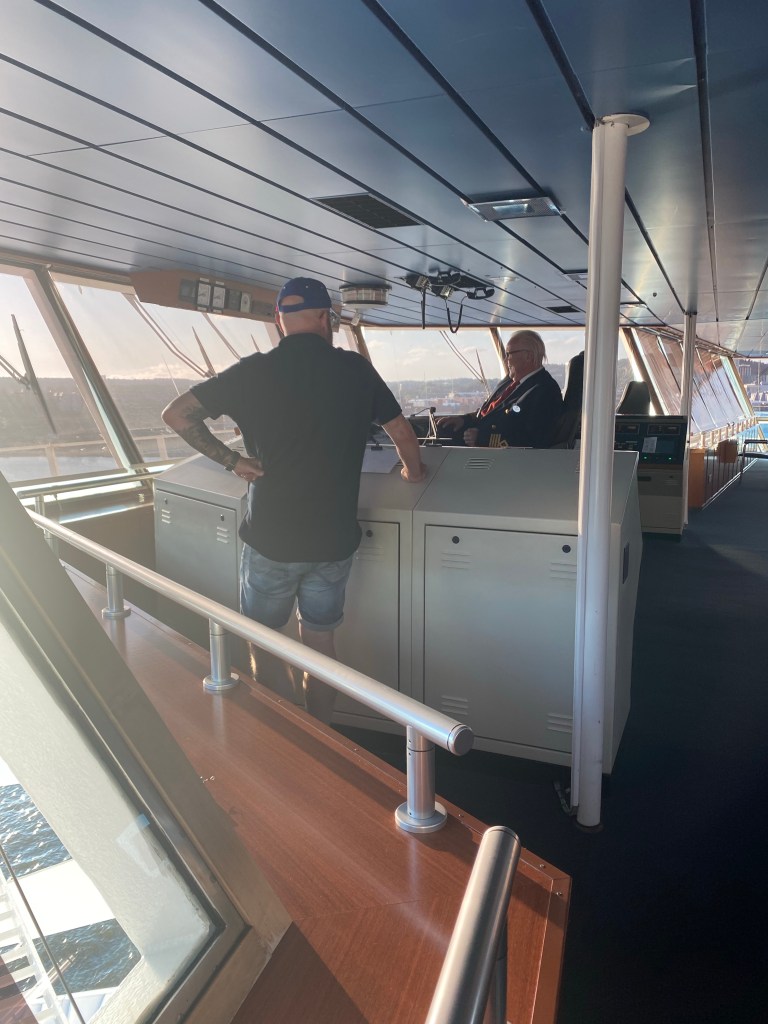 18:00 Kör bort till färjeläget och checkar in. Får sms från Kapten om vi vill komma upp på bryggan vid avgång.