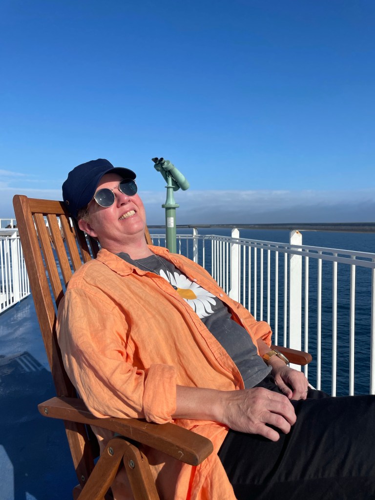 Vi gick sedan upp på däck och satte oss.