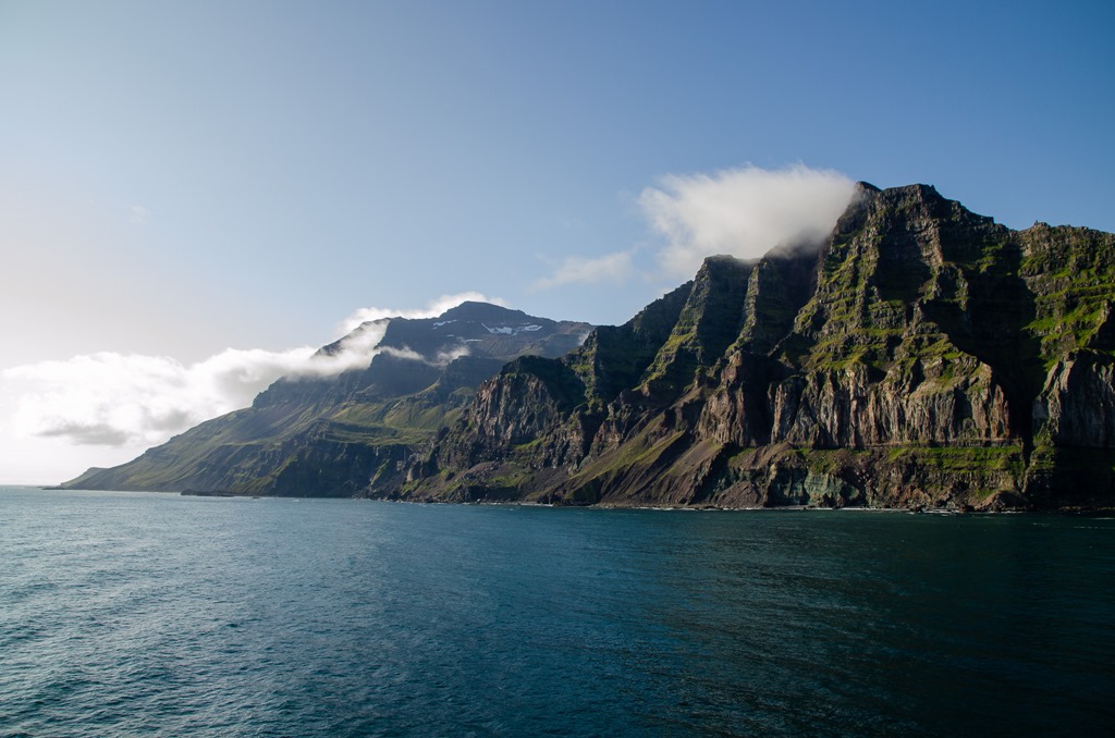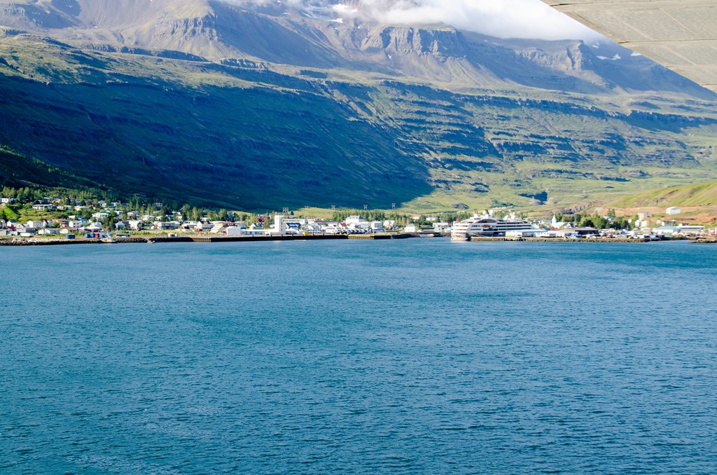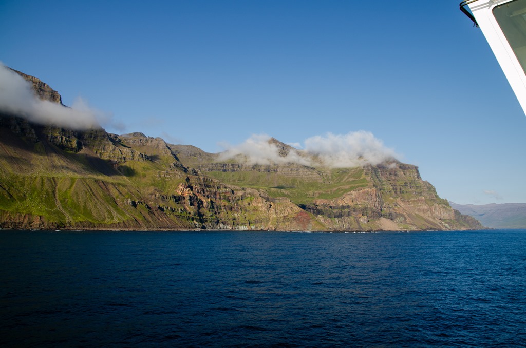 Går tillbaka till hytten och väcker Britta så vi äter lite frukost i hytten. Vid 8 tiden så öppnar de upp dörrarna till bildäck och jag kan lägga in våra saker. Sedan går jag upp på däck och vi står ute för att se inseglingen till Seydisfjördur.