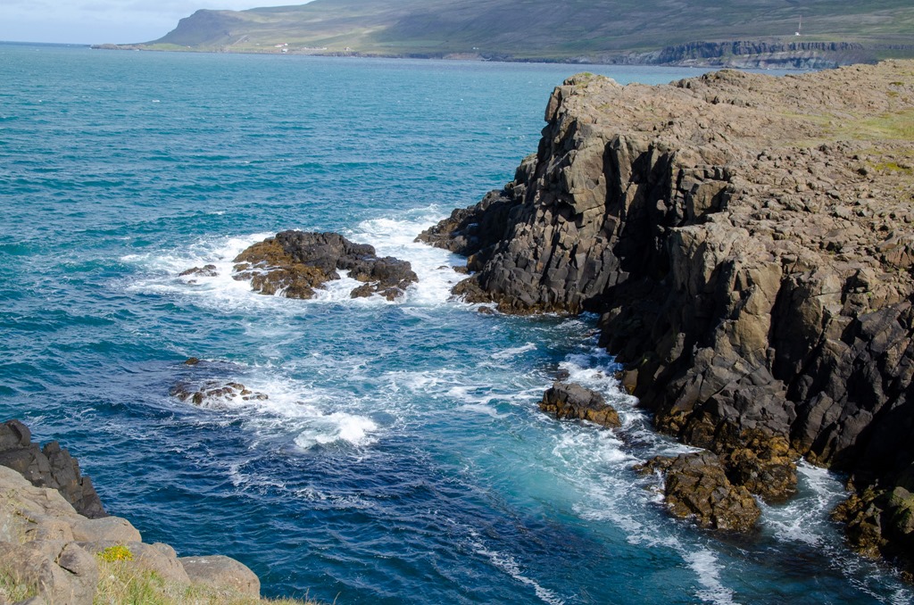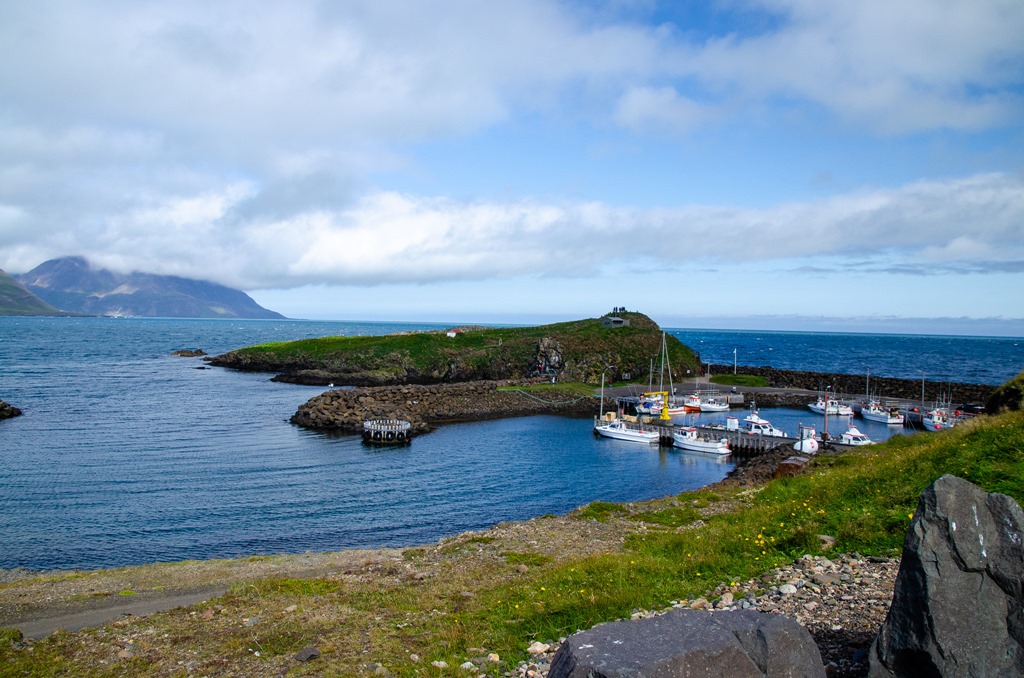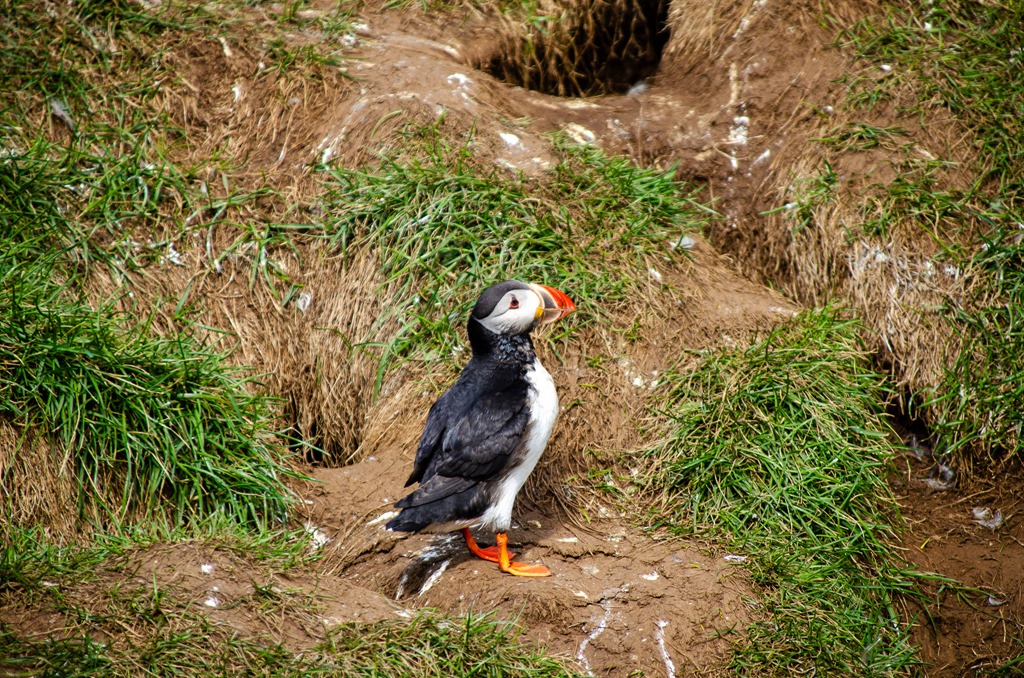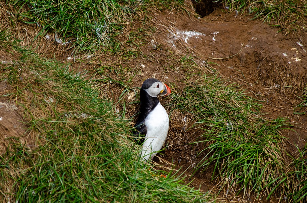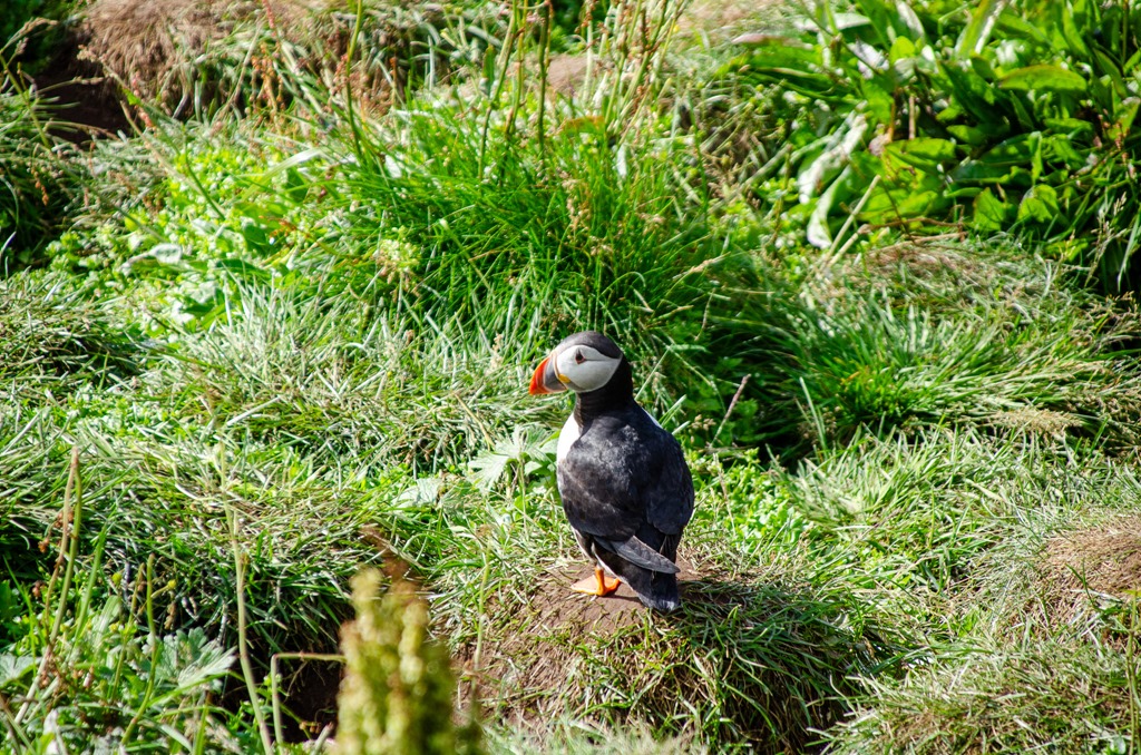 Vi fortsatte sedan vidare till Borgarfjarhöfn där det finns mycket Lunnefågel. Men det verkade som att de mesta redan fått sina ungar och gett sig iväg ut till havs igen. De är ju bara inne vid land när de lägger ägg och får ungar. Så nästa år i Maj månad kommer de tillbaka. Det blåser en hel del och är bara 9 grader så det är jacka och mössa som gäller.