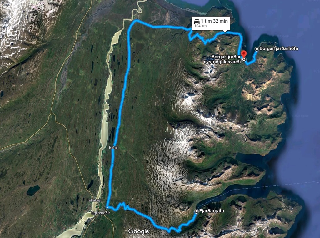 Vi körde sedan tillbaka 5 km till Borgarfjördur camping där vi stannar för dagen.
