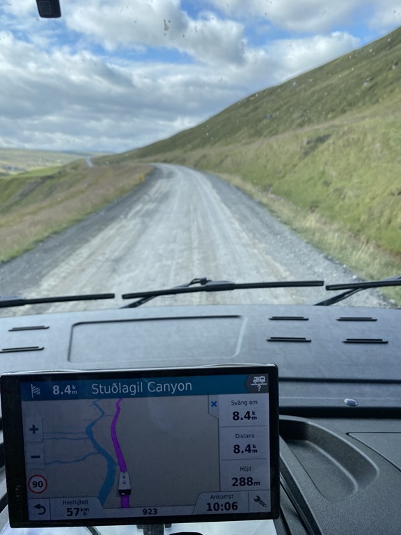 Sedan kom vi ut på väg 1 och då blev det fin asfaltsväg. Vi hade några mil innan vi skulle svänga av in mot Studlagil. Där blev det åter igen grusväg i ca 15 km.
