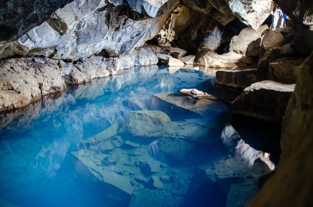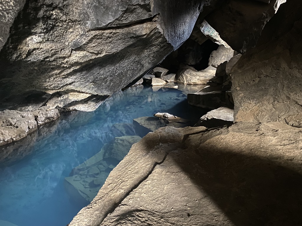 Efter 2,3 km promenad så kom vi fram till Grjotagja. Klättrade ner och tog några bilder, men det luktade inte särskilt gott där nere och vattnet. Det är inte tillåtet att bada där och fram till 1984 så kokade vattnet där. Nu ligger lavan ca 1 km under men det är så osäkert att det inte är tillåtet att bada.