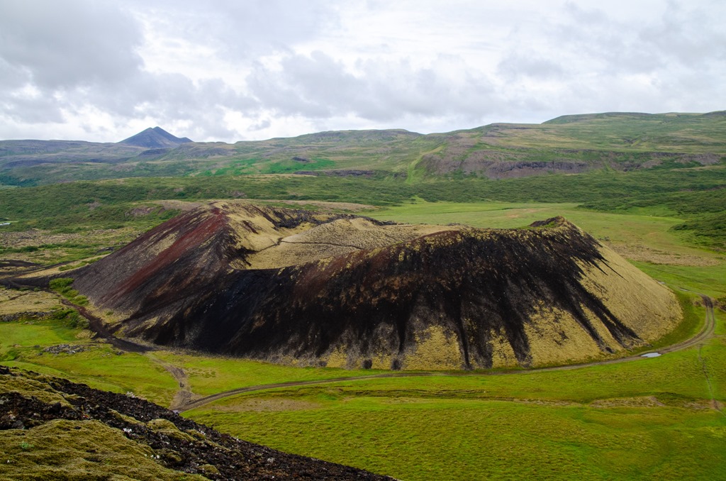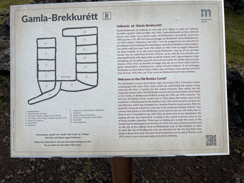 Efter ca 1,5 timma så stannar vi vid Grabrok Vulkan krater och går upp på den. På vägen upp så ser man lämningarna av de gamla får fållorna.