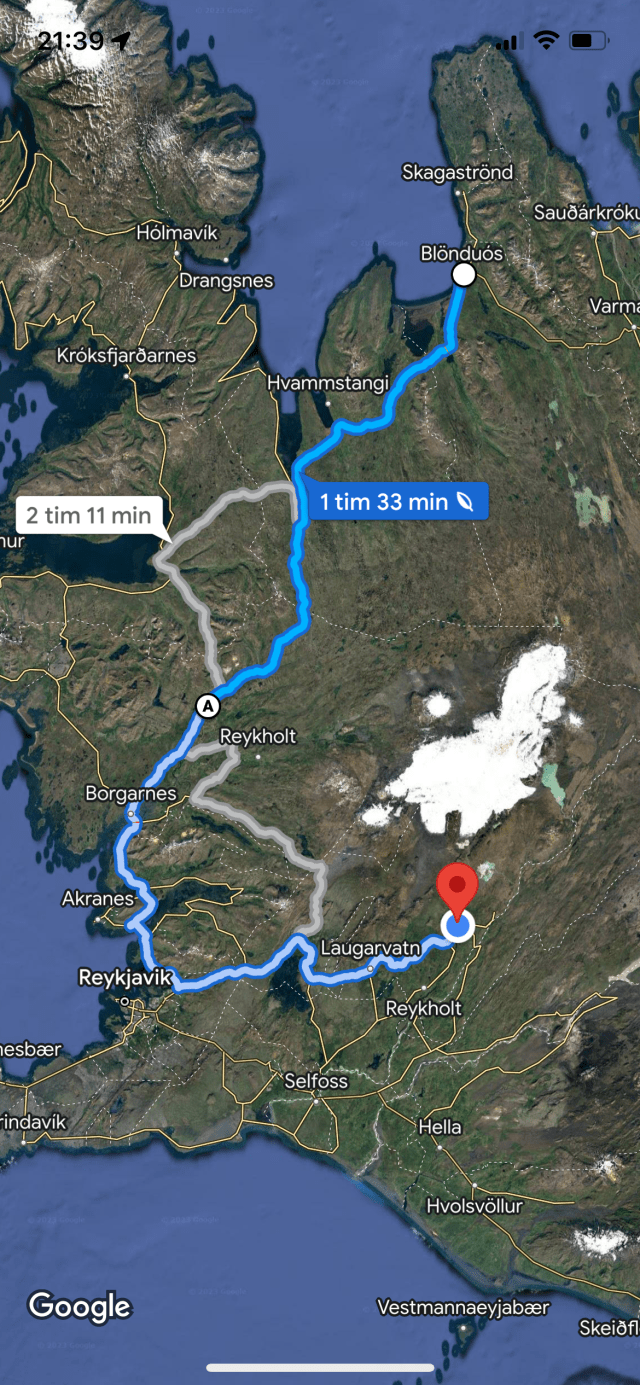 Därefter fortsatte färden söderut ända tills strax innan tunneln Hvalfjardargöng. Där stannar vi vid en rastplats och jag ordnar lite lunch. Vi fortsätter sedan söderut och när vi närmar oss Reykavik så vänder vi in i landet igen.