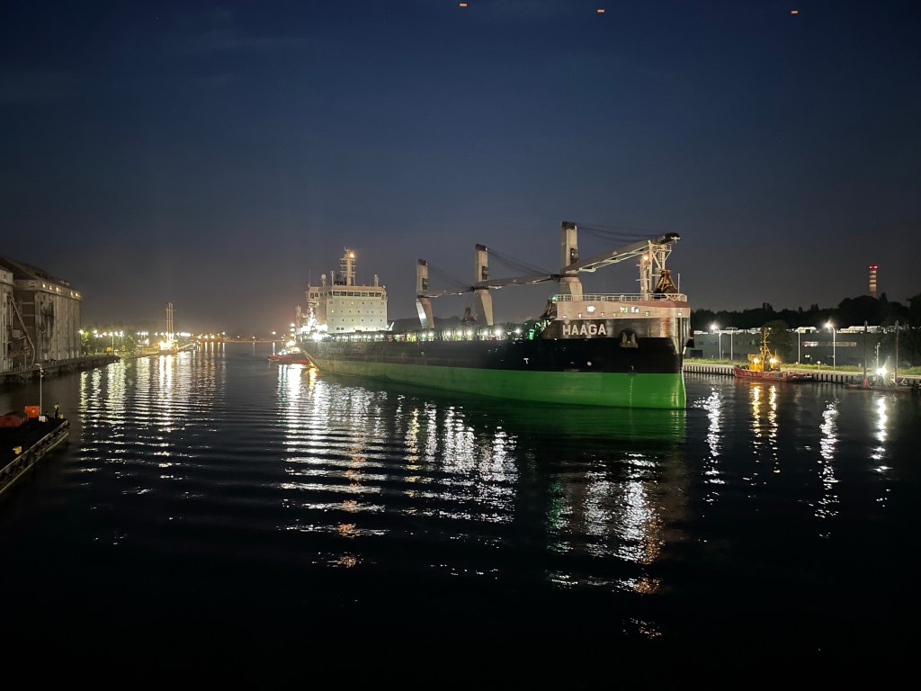 20:00 Börjar min kvälls vakt och de har väl lossat halva lasten. Så i morgon bitti skall vi nog vara klara. Vi har ingen ny last ännu så vi har inte bråttom.