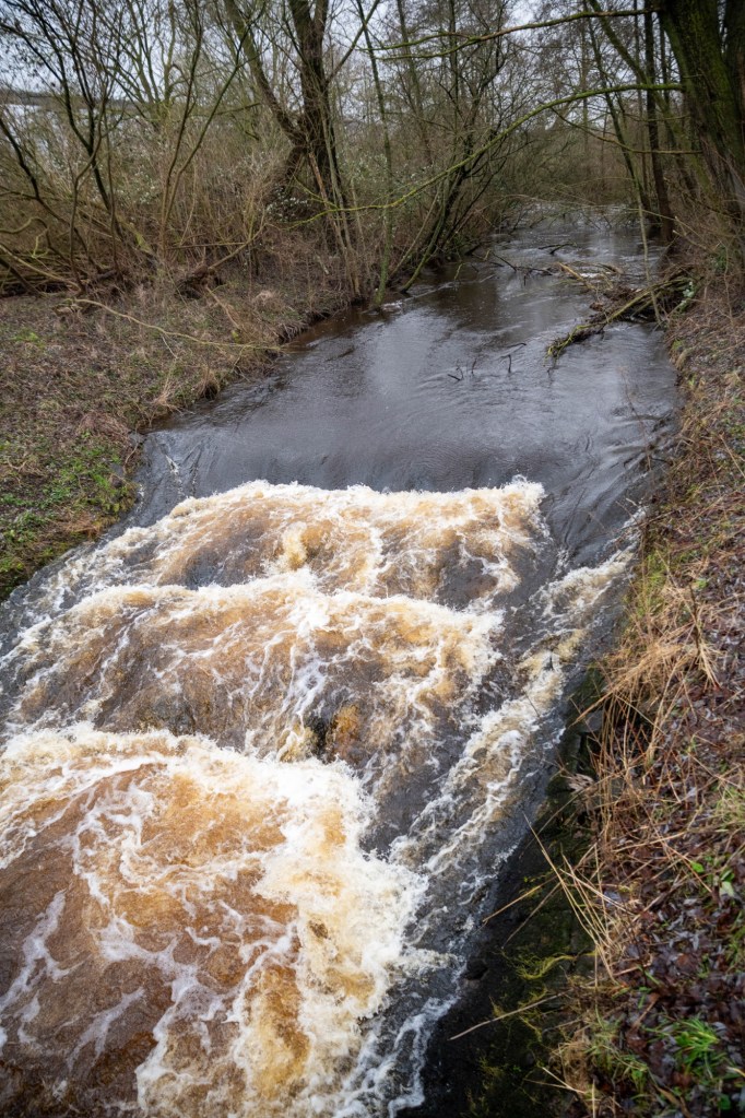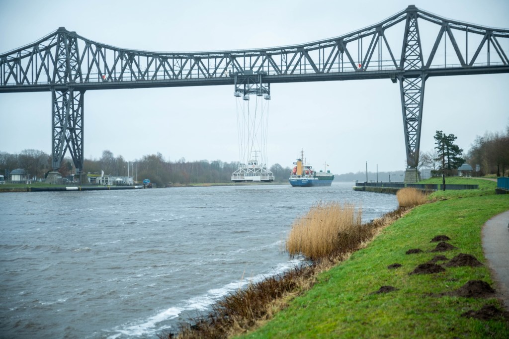 Det ösregnar och vi kör mot Rendsburg vid Kiel kanalen.
