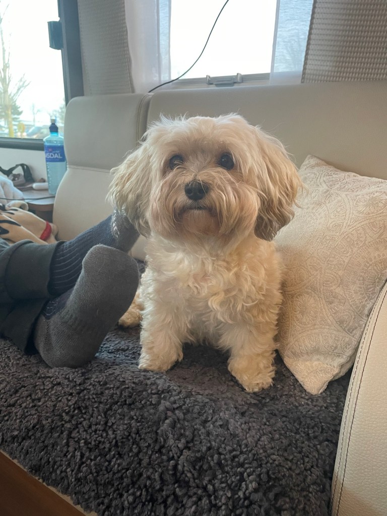 Det blåser upp emot 26 m/s under natten och rycker ordentligt i husbilen.