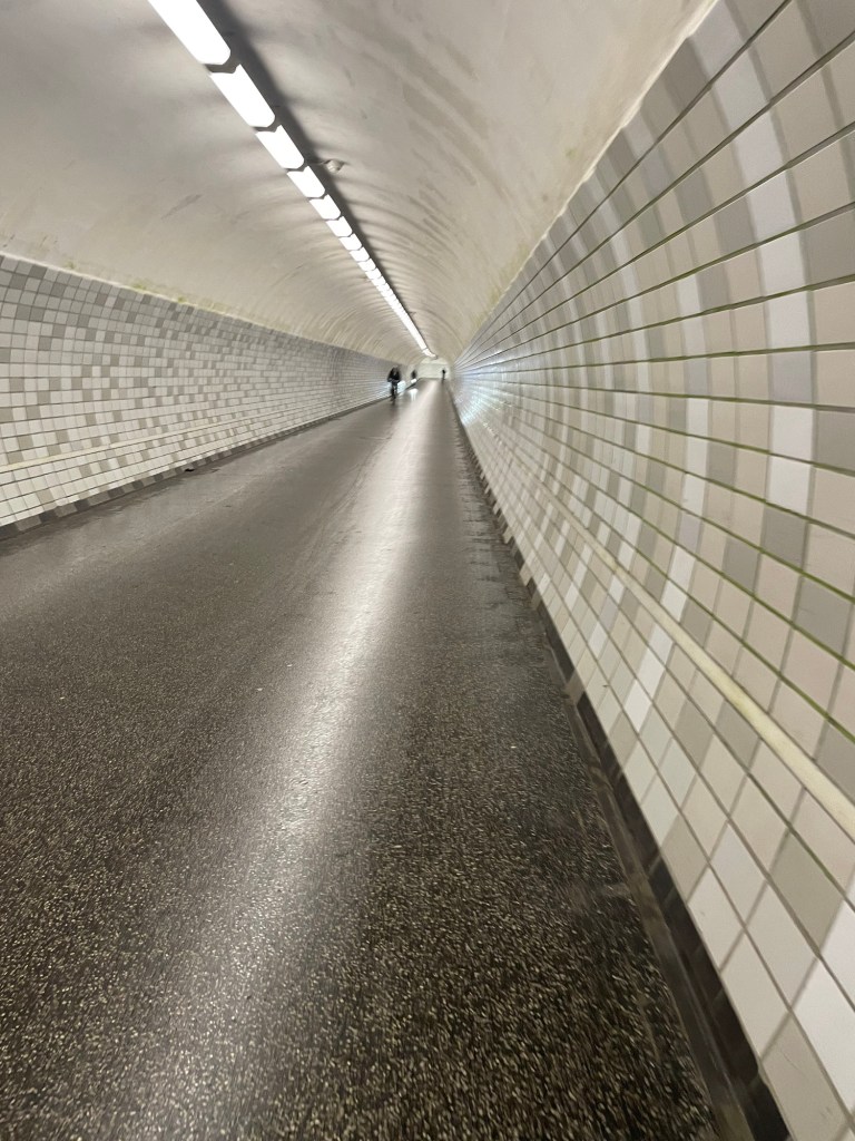 Man behöver ju mynt för att kunna betala för strömmen. Så jag går för att hitta en bankautomat. Går under Kielkanalen.