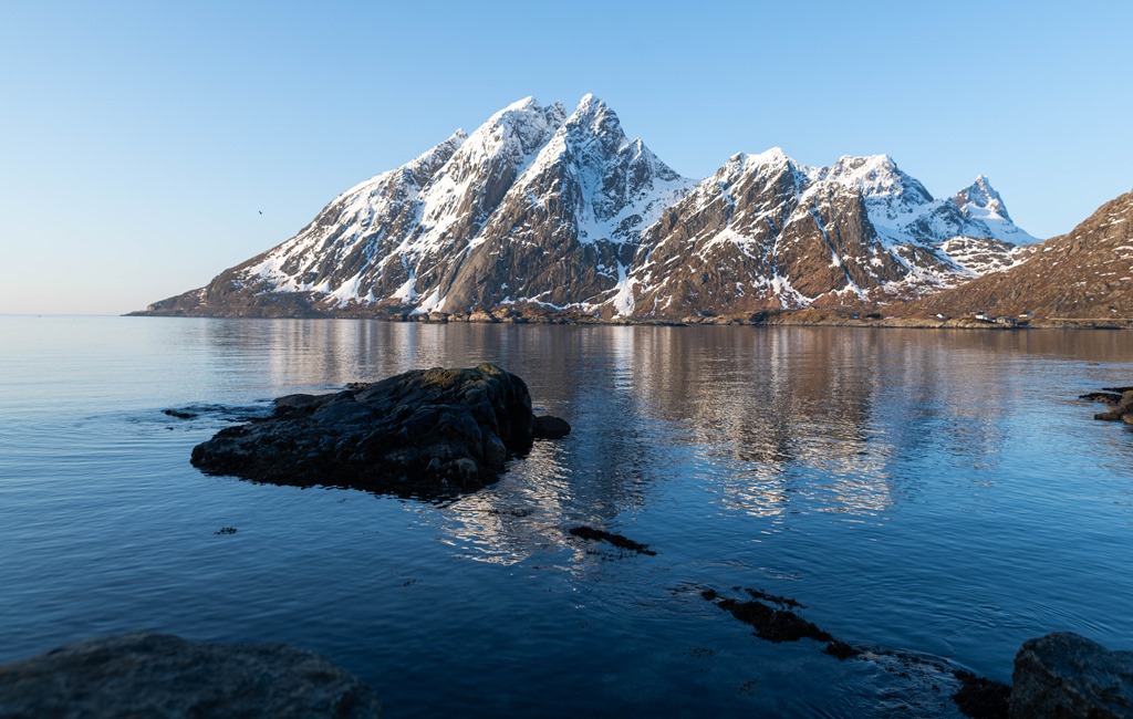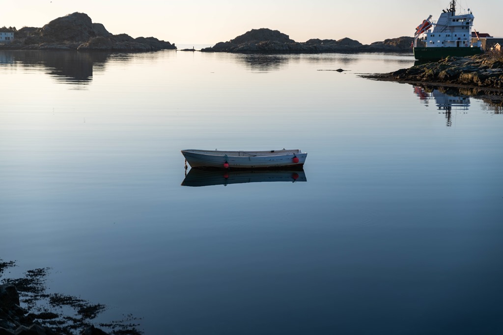 Vaknar strax efter 6 och går upp på bryggan. Tar mig lite kaffe och njuter av utsikten. Vi har avtalat med fiskemottaket att vi skall vara framme 07:00.