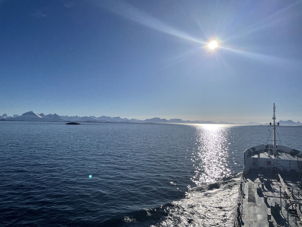 Mötte svenska kryssnings båten Kinfish som var på väg norrut för Svalbards säsongen.