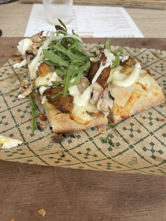 Vi gick sedan in till byn och där pågick Köningfest eftersom kungen fyller år idag. Det var fullt med uppträdande och cirkus och öltält.Vi tog oss varsin pizza och några öl.