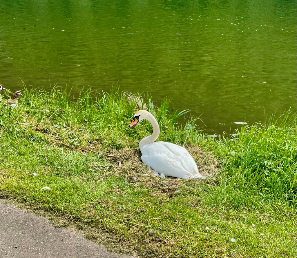 Efter lunch så gick vi en lite runda. Inte så långt för det är 25 grader och vindstilla. Men vi fick se en svan som låg på sina ägg.