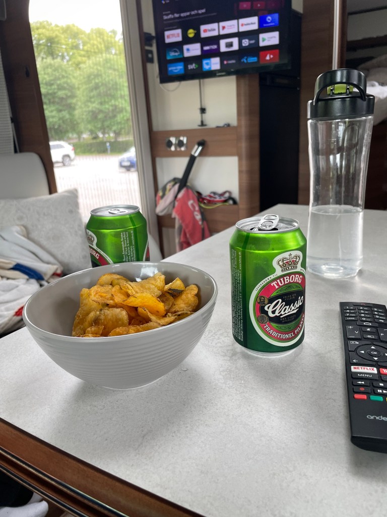 17:00 Framme i Gysinge och hittade en ställplats. Lagom till fotbollen skall börja.