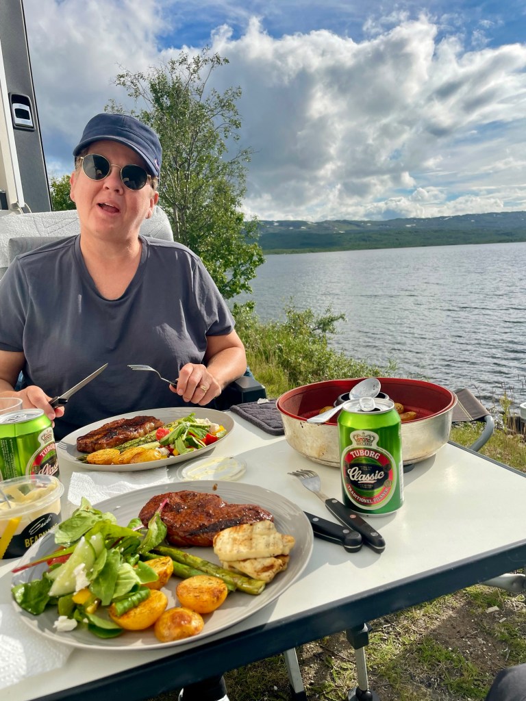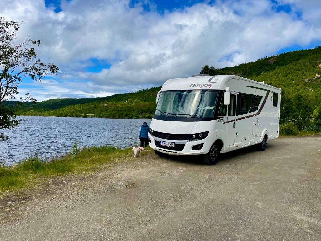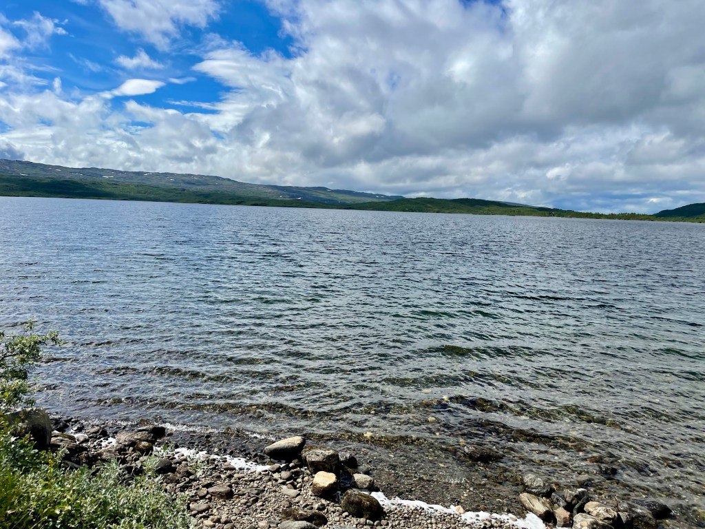 Vi hittar en jättefin plats vid sjön Raudvatnet. Bestämmer att vi stannar här till i morgon.