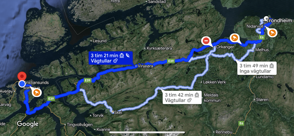 När vi kom ombord på färjan Moldefjord mellan Halsa-Kanestraum så skickade jag meddelande till Christoffer att vi hade 1 timma kvar till Kristiansund.