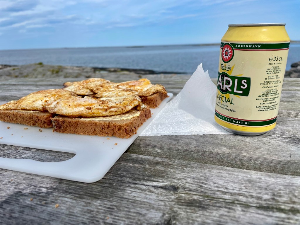 Jag ordnade lite lunch som vi avnjöt utanför husbilen.