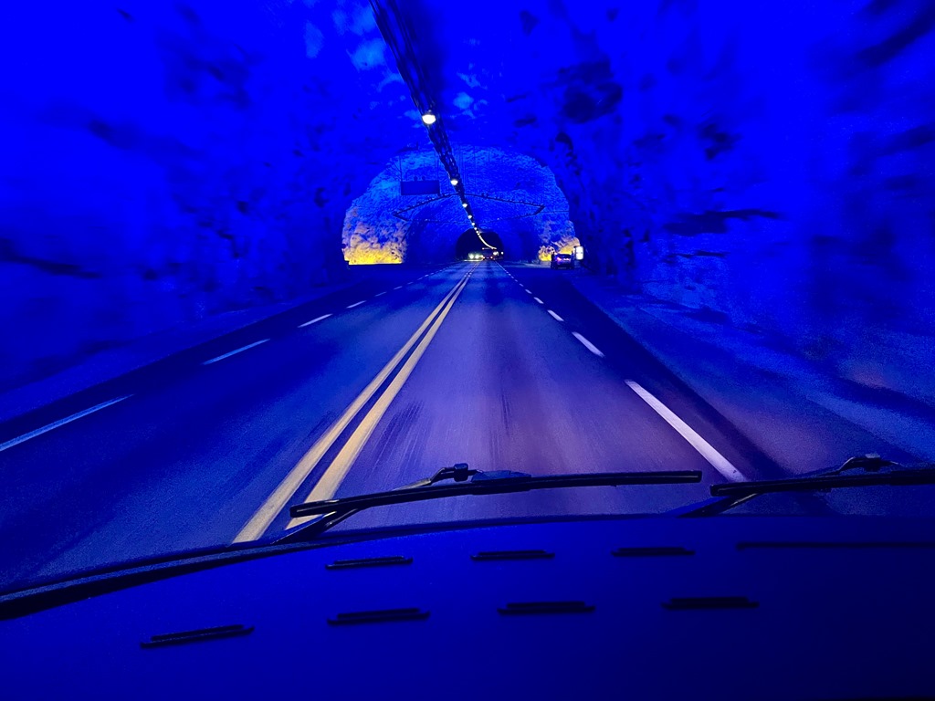 Vi kör igenom den 24,5 km långa Lärdalstunnelen