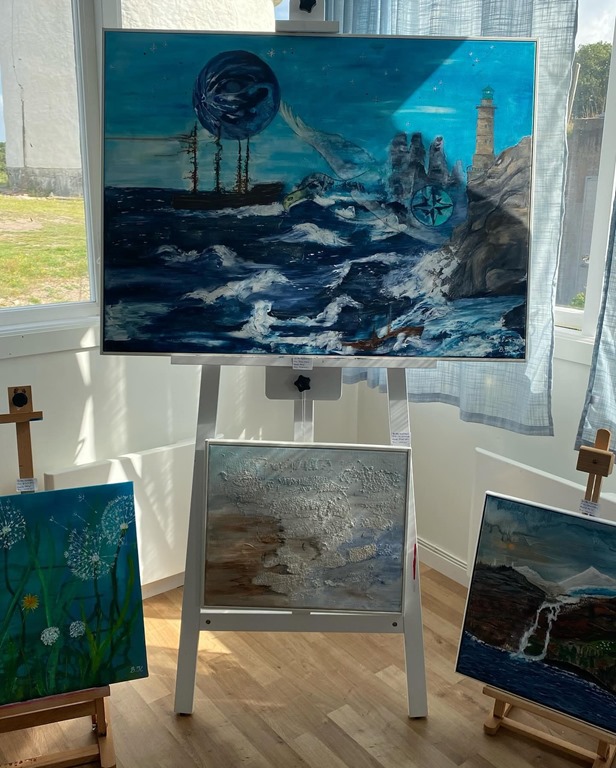 Ja efter att vi städat ur husbilen så var det dags att börja förbereda för Brittas konstutställning ute vid Morups Tånge. De var 3 stycken tjejer som skulle ha utställningen gemensamt.![]()