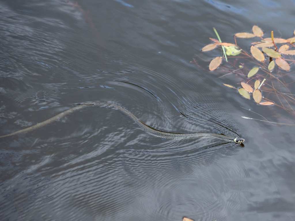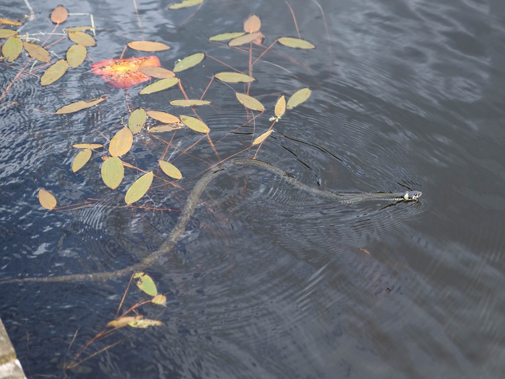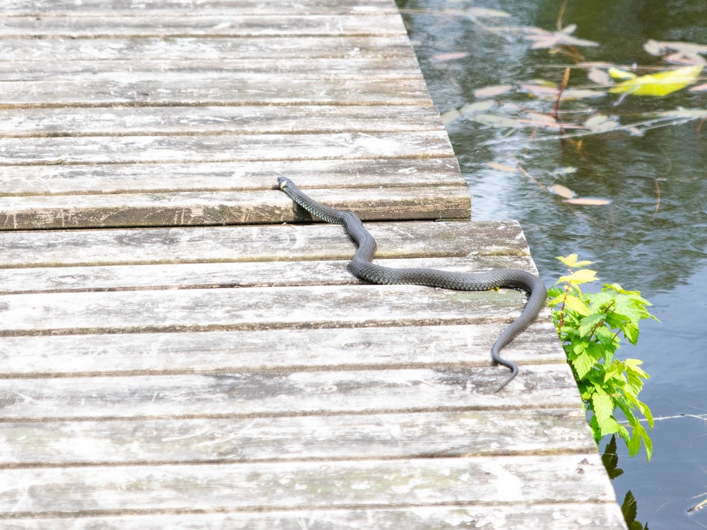 Vi fick syn på en liten vattensnok ute på bryggan.