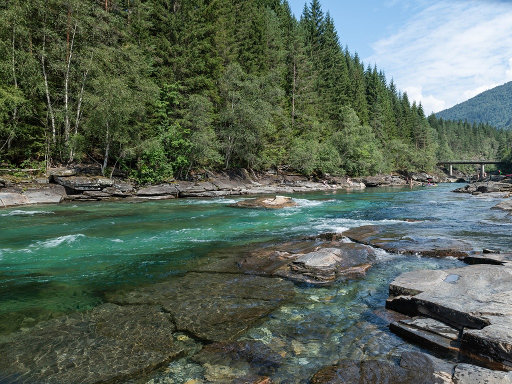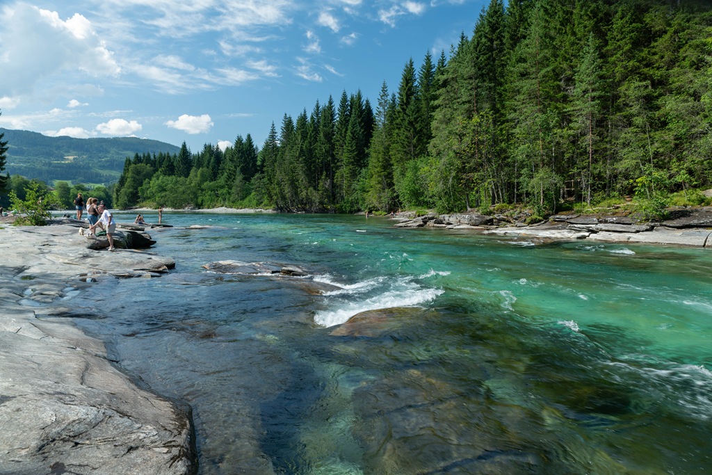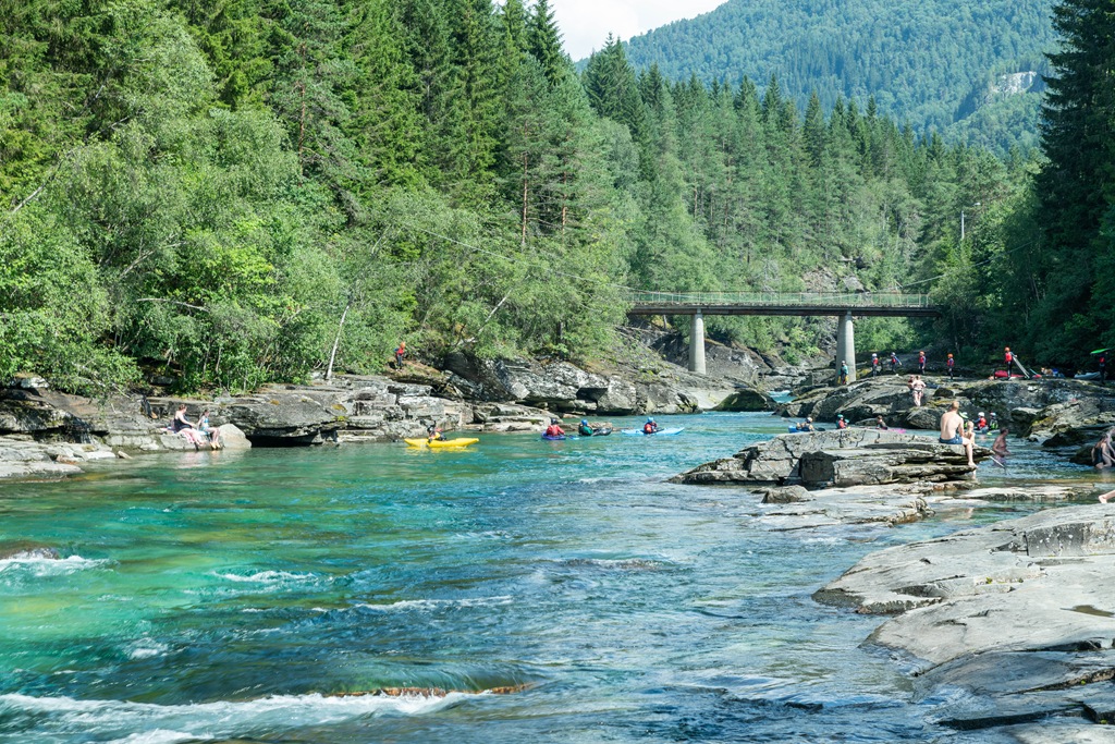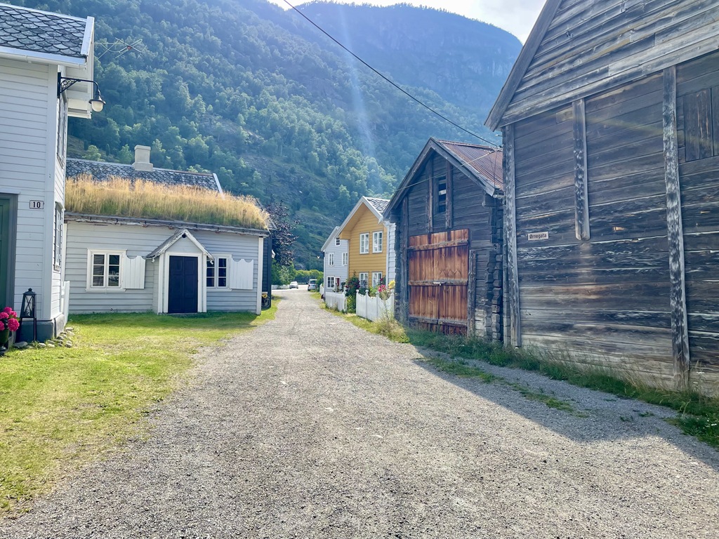 Vi fortsätter sedan mot Lärdal där vi stannar på campingen. Vi tar en tur upp på gamle byen.