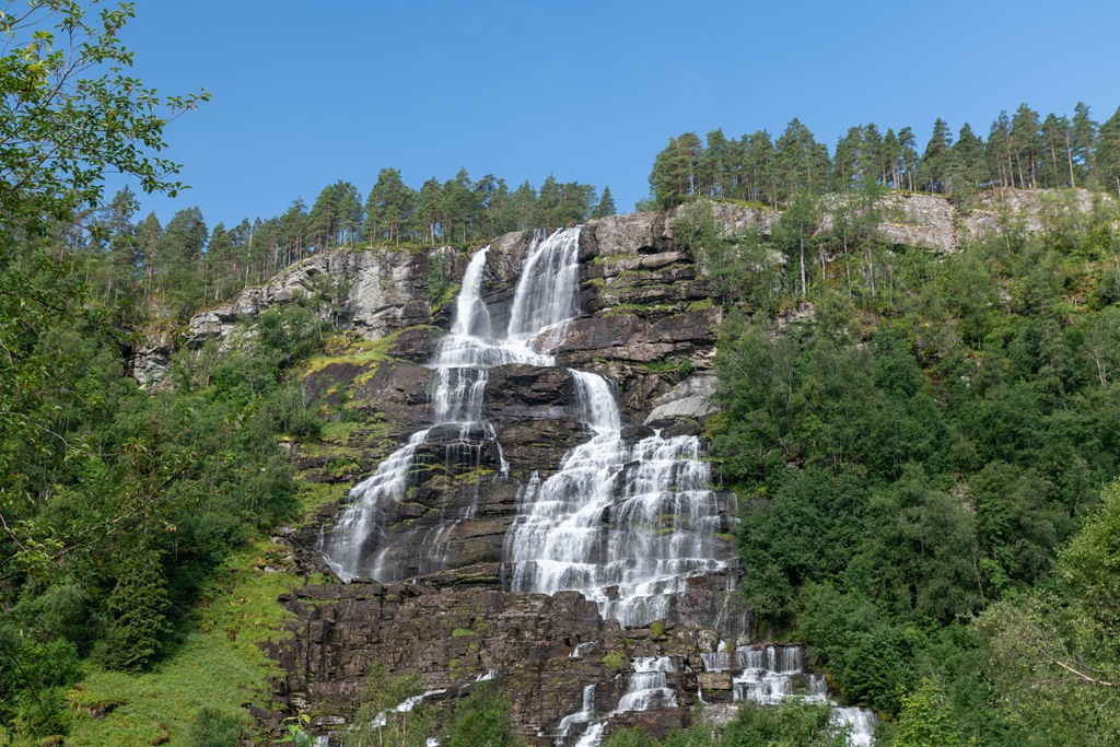 Efter frukost så kör vi bort till Tvindefossen för att ta lite bilder. Det är inte så mycket vatten i fallet som vi sett förr, men det är fint och Joel tycker om att se det.![]()