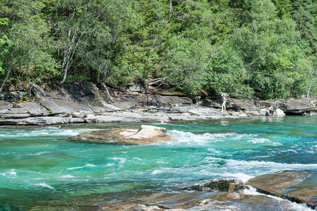 Vi tar lite lunch på byn innan vi kör upp till Björkemoen och badar lite.