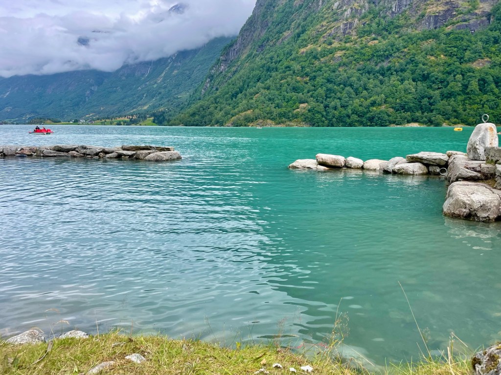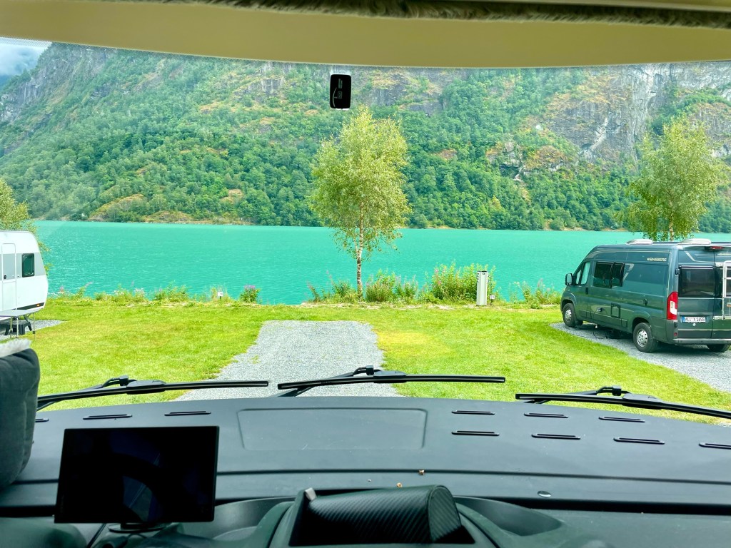 Vi körde de få kilometerna till färjan och åkte över fjorden. Sedan vidare förbi glaciären vid Fjærland.