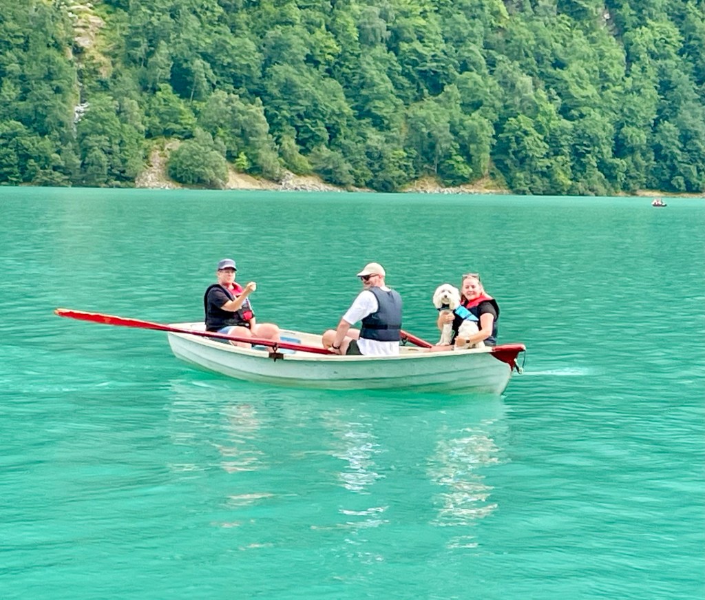 Sedan gav sig Britta, Elin och Joel ut på sjön en tur.