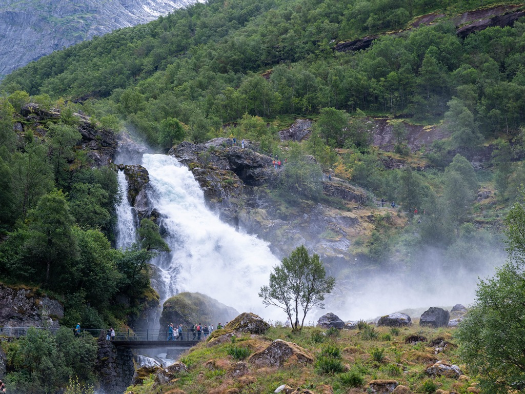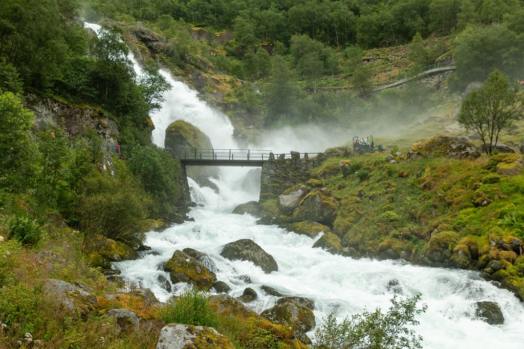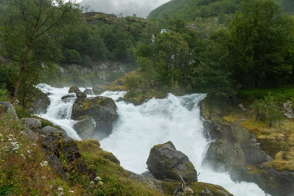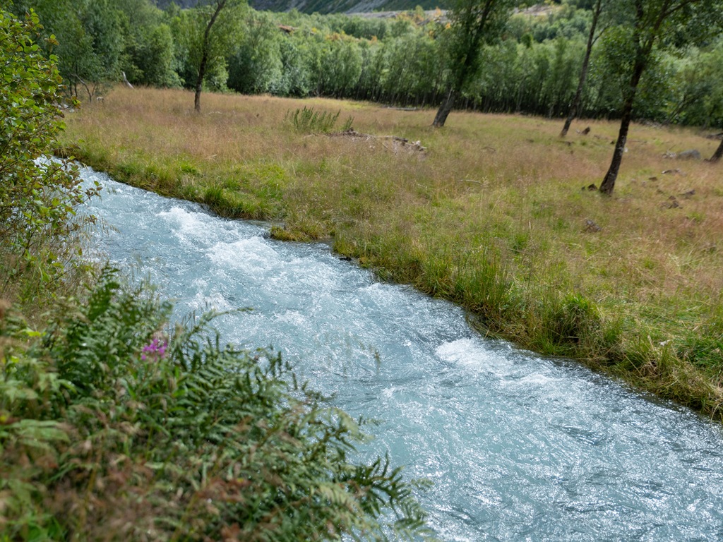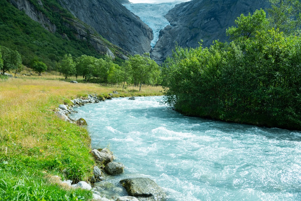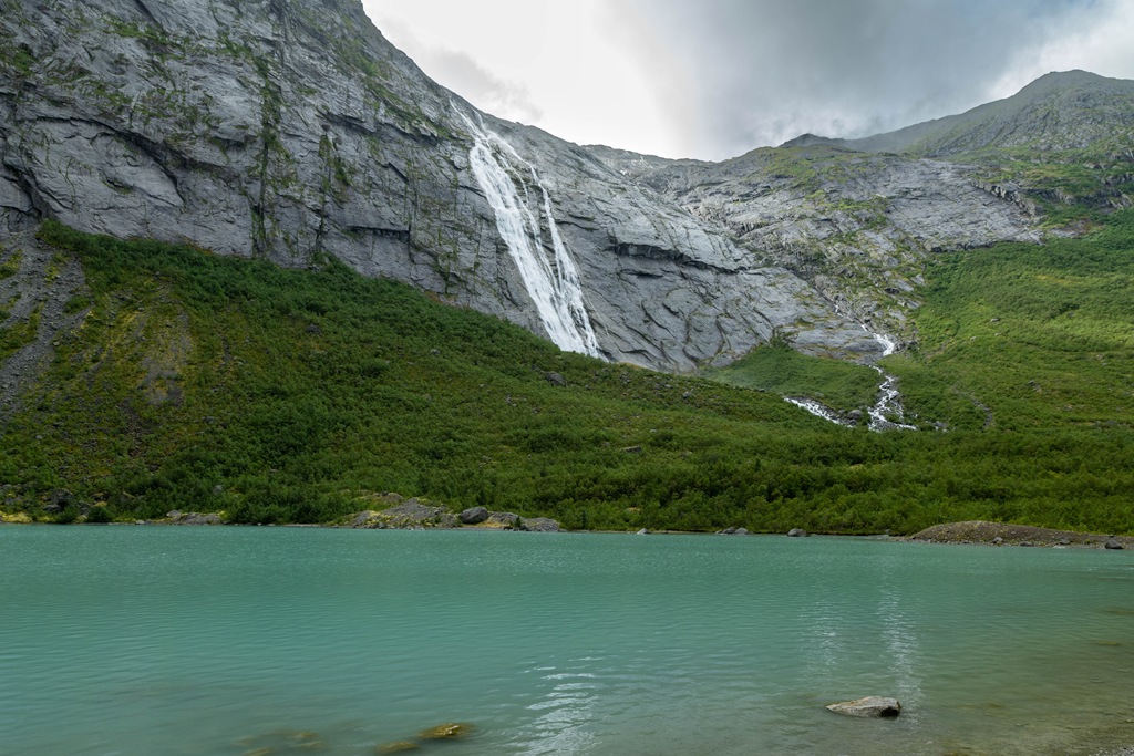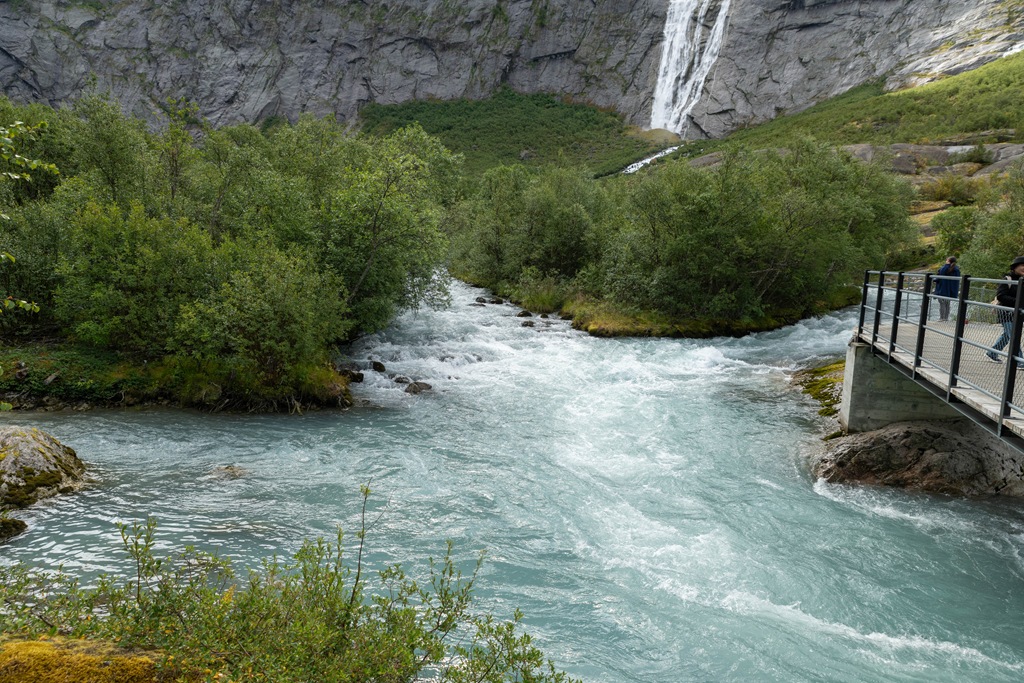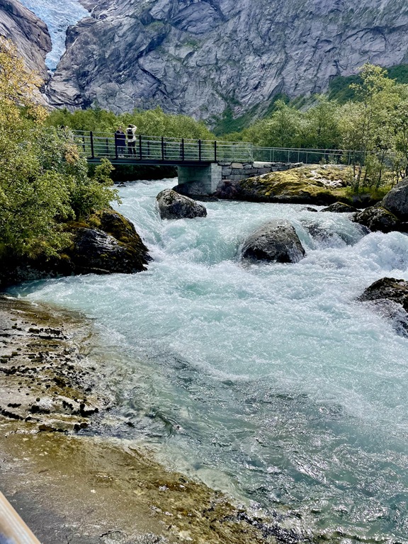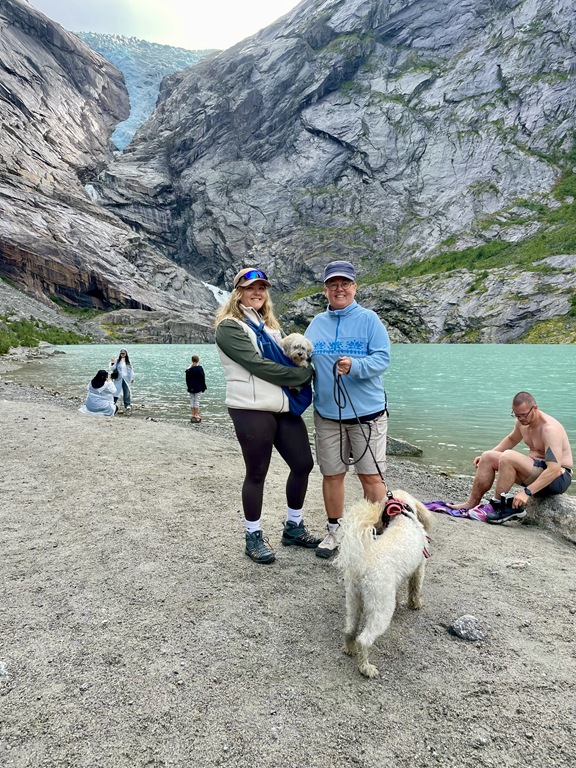 Efter frukost så packade vi ryggsäck och åkte in till Briksdalsbreen. Där parkerade vi och gick sedan upp till glaciären, vilket är ca 2,5 km var väg.