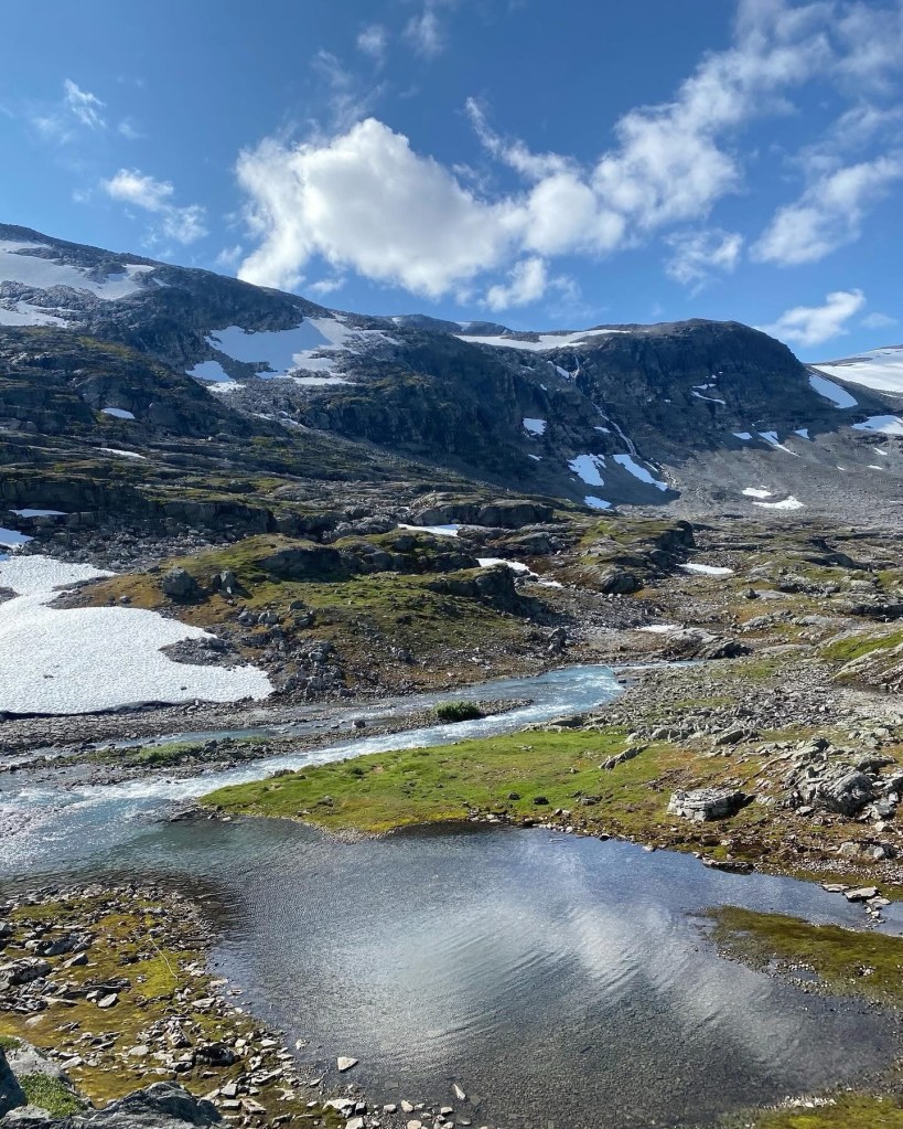 Vi körde mot Loen och vidare genom Stryn innan vi tog gamla strynfjellsveien. Den är smal och slingrig, men vilken utsikt.