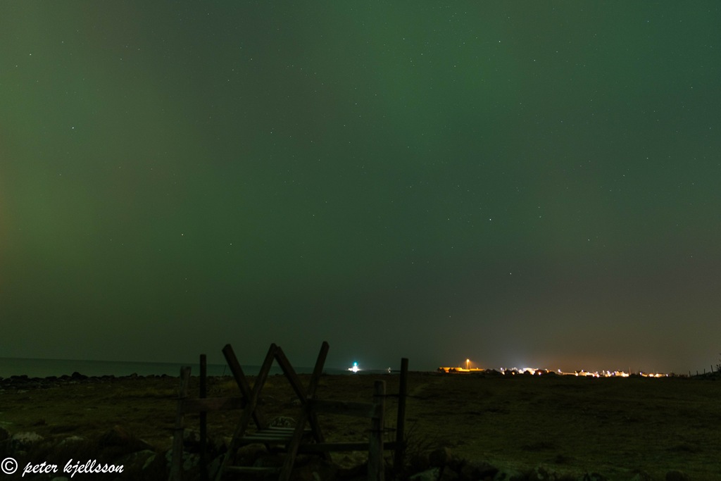 Blev mycket norrsken men inte lika kraftigt som det brukar vara uppe i Norge.