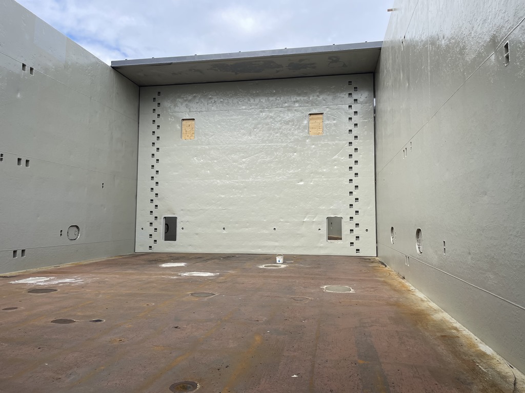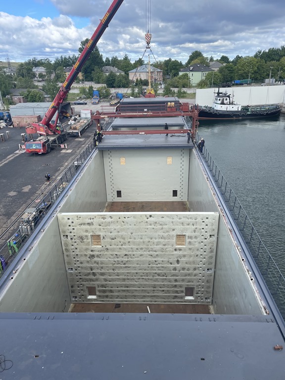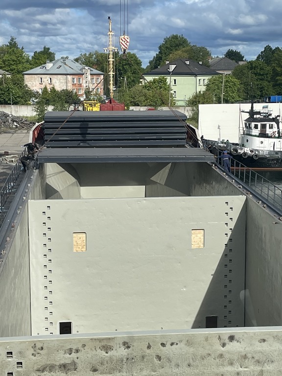 Skotten i lastrummet är på plats och redo för lastning av 3307 ton ärtor. Varje skott väger 16 ton och lastluckorna 14 ton styck.