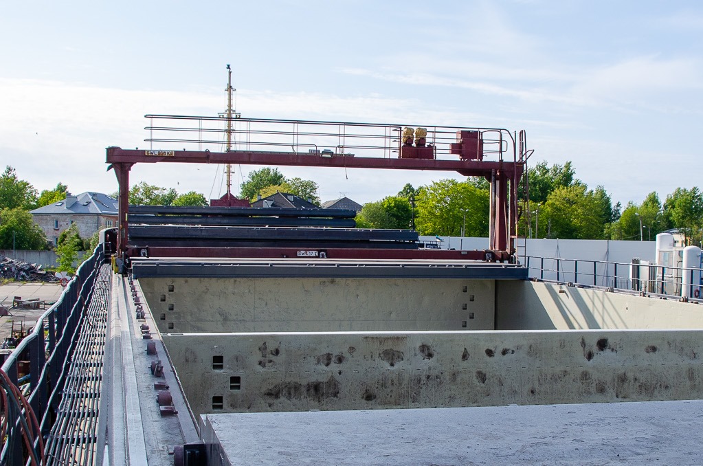 Gantrykranen är på plats och vi kan snart börja flytta lastluckorna med den. Den skall bara kopplas in ordentligt först.