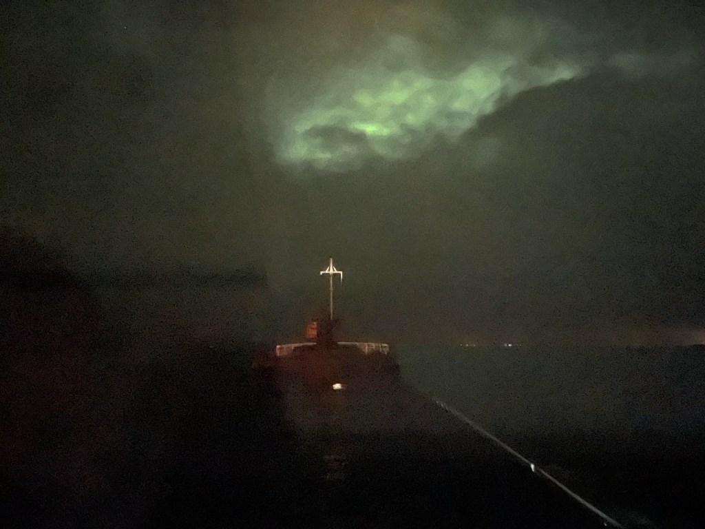 20:00 Kommer på vakt och tänker liga kvar i en timma till innan vi går. Vi skall vara i Tromsö i morgon vid sjutiden.