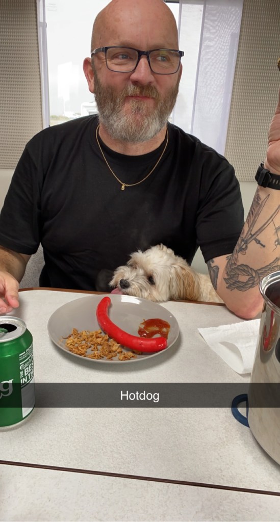 Tillbaka vid husbilen så mötte jag Britta och Chilli som var ute på morgonpromenad.