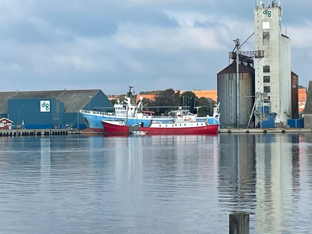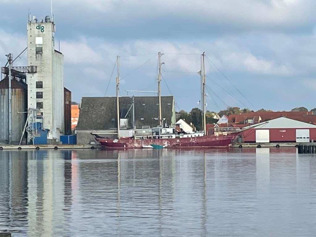 Vi fortsätter sedan västerut och stannar först i Haderslev. Båtklubben där har en fin ställplats och fint servicehus precis som det brukar vara i Danmark. 130:- natten med ström.
