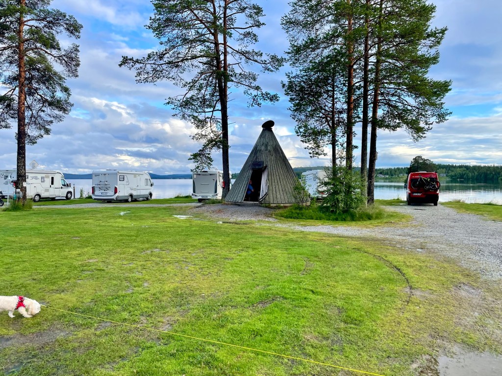 Därefter hade vi bara 3 km till Campingen. Vi checkade in och valde en plats med havsutsikt. Båten skulle inte vara ledig innan 18:00 så jag gjorde ordentlig lunch.